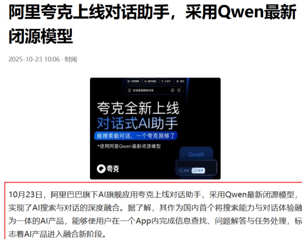 西方国家有点坐不住了,夸克C计划内容曝光,又是一个“核武器”! 此前有媒体独家爆料称,夸克内部正在推进一个名为“C计划”的AI业务,并且近期就会有成果落地。 这消息一出来,不光行业里的人炸开了锅,资本市场先给了反应。阿里巴巴的股价当天盘中就往上冲了 4.2 个点,虽说午后涨幅收窄了点,但最后还是涨了近 2 个点,报在 165.1 港元一股,明眼人都知道这是冲着 C 计划来的。 毕竟这可不是临时凑出来的项目,夸克核心团队牵头,通义实验室好几位级别不低的人也深度参与,这种 “业务骨干 + 顶尖研究院” 的配置,一看就是阿里在 AI 上押的重注。 C 计划在夸克内部已经秘密推进挺长时间了,马上要落地的还只是阶段性成果,真正要成气候还得长期砸钱,靠模型技术不断突破。 代号里的 “C” 到底啥意思,内部传了好几种说法,有人说就是 Chat 的意思,要搞新的对话形态。 还有种更有意思的猜测,说取自 “吃豆人” 游戏,那目标指向谁,懂的都懂。不过夸克这边至今没出面回应,倒是把大家的期待值拉得更满了。 最让人在意的是这东西的技术路子,直接戳中了现在 AI 行业的痛点。现在市面上的 AI 助手大多有个通病,要么回答得像背模板,要么动不动就瞎编信息,用户还得自己到处查证,体验特别别扭。 夸克这回直接把通义千问的最新闭源模型和自己二十年的搜索技术捏到了一起,算是把这个问题解决了。 那模型本身就不弱,之前在国际测试里成绩比 GPT-3.5 还好,逻辑推理和专业知识储备都够硬,再加上搜索的底子,回答问题不光给结果,还把参考资料、验证路径都标得清清楚楚,彻底跟 “胡说八道” 划清界限。 这种 “答案能溯源” 的本事,现在看真是抓对了用户的需求。尤其是年轻人,现在夸克 AI 的日活都破亿了,一半以上是 00 后,这些数字原住民对 AI “不靠谱” 的容忍度极低,就吃 “透明” 这一套。 连医学、法律这种不能马虎的领域,用户用着都觉得踏实,说终于不用怕被 AI 编的假数据坑了。 这已经不是简单的聊天机器人了,等于把 “信息检索” 升级成了 “决策辅助”,用处一下子就大了。 行业里现在都在说,夸克这步算是踩在了 AI 竞争的新节点上。以前大家比的是 “谁更聪明”,现在看来,“谁更可信” 才是生死线。 毕竟 AI 一旦用到医疗、教育这些地方,瞎编一句的代价可能特别大。而且夸克本身有搜索的底子,数据积累和技术沉淀摆在那儿,跟纯做 AI 的公司比,天然就有优势,这波算是搜索厂商对 AI 领域的降维打击。 西方那些一直攥着 AI 话语权的玩家能坐得住才怪,毕竟以前他们总觉得在模型技术上占着上风,现在夸克这一手直接在 “可信” 这个关键点上撕开了口子。 要知道全球用户对 AI 答案透明度的需求都是一致的,美国那个 Perplexity AI 就是靠标来源估值涨上去的,现在中国这边直接拿出技术更硬的产品,等于在这个赛道上抢了先机。 更别说夸克背后还有阿里的生态撑着,后续要是跟电商、云业务这些联动起来,能爆发出的能量更没法小看。 现在外界也有不少讨论,说闭源模型能不能一直保持优势,毕竟开源社区的创新力也不能忽视,还有人担心等竞品都跟上溯源功能,夸克能不能留住用户。 但不管怎么说,这东西已经落地了,而且一出来就拿到了上亿用户的认可,尤其是年轻群体的粘性已经起来了。 西方国家这会儿估计正盯着看,毕竟这可不是简单的产品迭代,而是直接改变了 AI 竞争的规则,再想靠以前的技术壁垒拿捏市场,怕是没那么容易了。 夸克这波操作也算是给全球 AI 行业提了个醒,技术再牛,最终还得落到用户的真实需求上。 以前西方总觉得自己能定义科技发展的方向,现在中国企业直接用产品给出了新答案,这 “核武器” 般的突破,自然会让他们坐不住。 接下来就看后续迭代的力度,要是能一直保持这种 “靠谱” 的优势,说不定真能在 AI 领域跑出一条新路子,到时候西方的焦虑恐怕还得更甚。 毕竟在技术竞争里,从来都是谁先解决真问题,谁就有话语权,夸克这一步,算是把主动权攥在了自己手里。 参考资料:钱江晚报《夸克密谋了一个“C计划”,要当“吃豆人”》