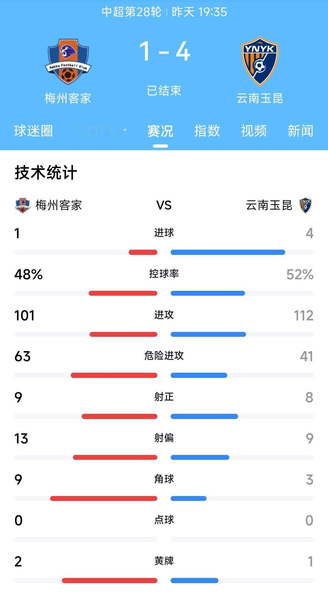 昨天的中超联赛梅州客家1:4输给云南玉昆。这意味着长春亚泰的保级又重燃希望,在少赛一场的情况下长春亚泰只落后梅州客家2分。 今天下午的比赛长春亚泰如果能够赢下天津津门虎我认为长春亚泰依然有希望保级,如果还像前几天打河南那样毫无斗志那就只能目睹长春亚泰降级,目前来看就是这个趋势。