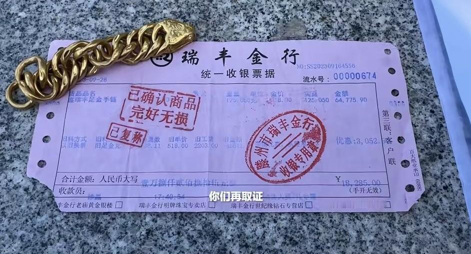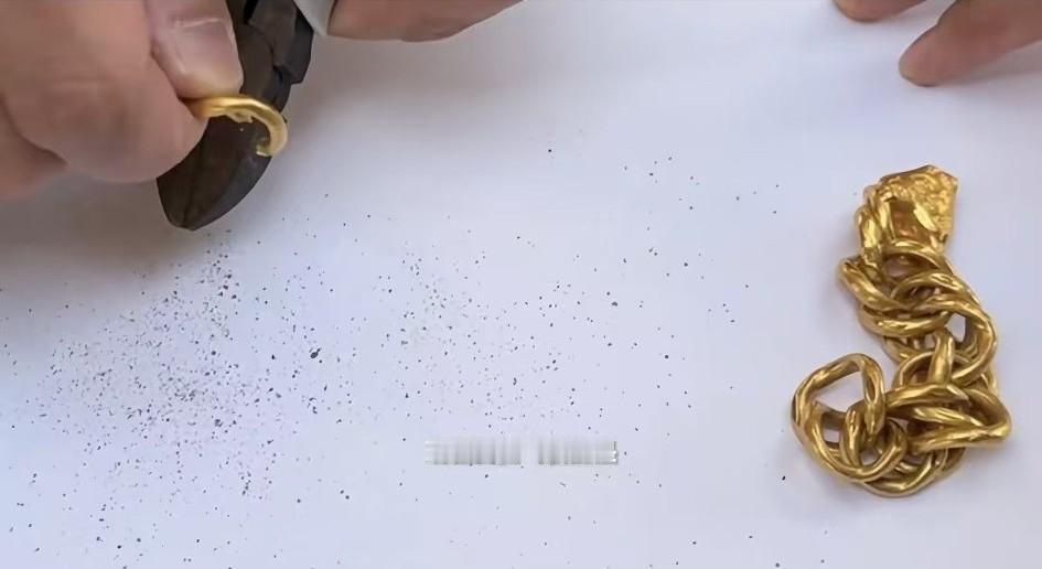 刚知道金饰里面还可以装沙加重!山东一女士两年前花6万多买了一个125.05g的黄金手链,今年6月想卖掉,到收金的地方一剪开,发现中空部分能倒出细沙。 当时买主找到店家,有店员跟帽叔叔说同意赔一个相同克数的黄金首饰,但后来又反悔了,说那个答应赔的店员不是他们一线员工,说话不算。 虽然买家有发票和录像,有铭牌,但店家说手链已经剪开了,不能证明是当初买走的那一条。 品牌金饰一般都有品牌钢印,这个很难复刻。铭牌只是标着编号、重量、成色的小牌,没有啥说服力。 沙子倒掉后,重量也改变了。 现在店家不认的确是不好办。