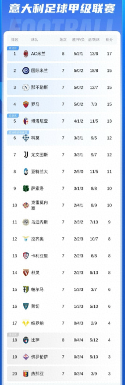 意甲第8轮,米兰先赛2-2战平比萨。 米兰先赛只领先国米2分,后者本轮将客战那不勒斯。