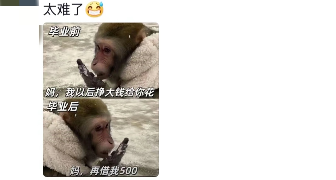 毕业前:妈,我以后肯定挣大钱给你花 毕业后:妈,再借我500