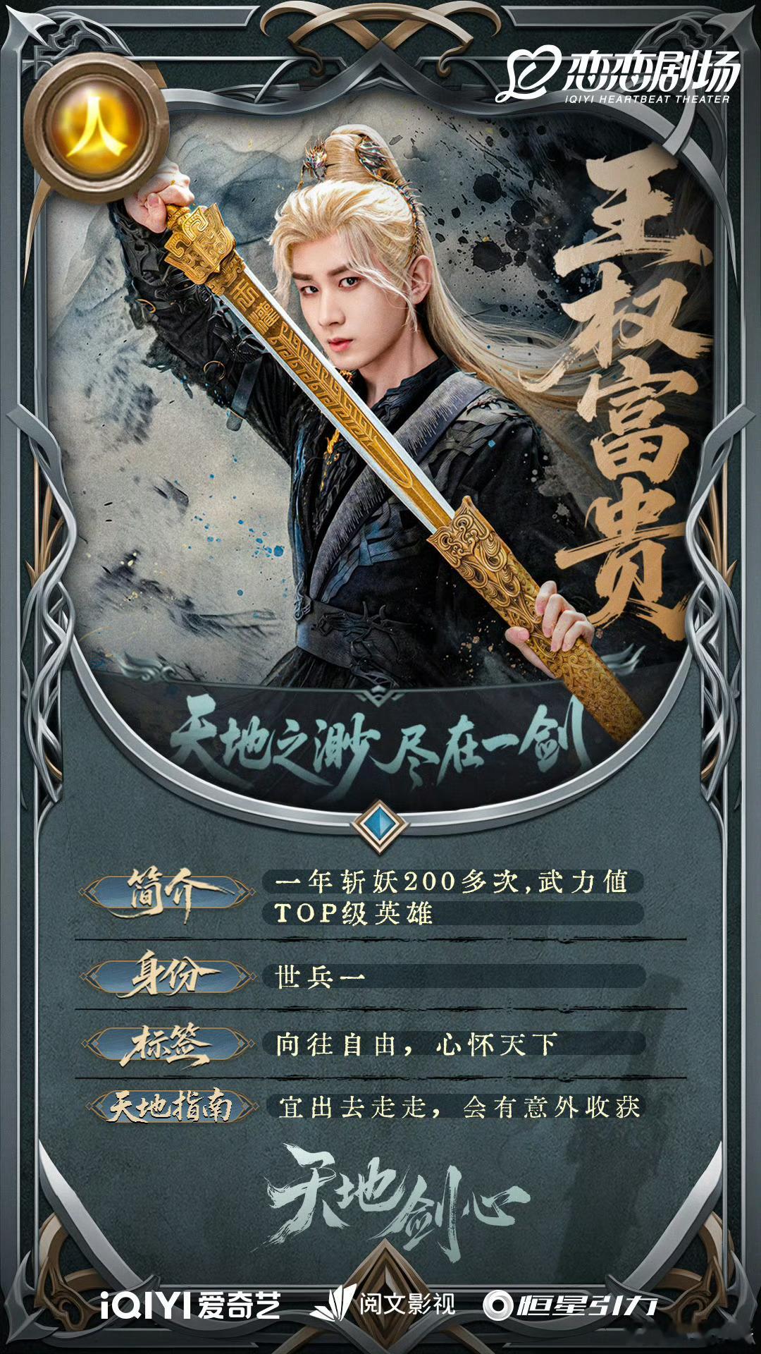 成毅《天地剑心》今日开播海报,今天中午12点我们不见不散,一起接富贵[哇]天地剑
