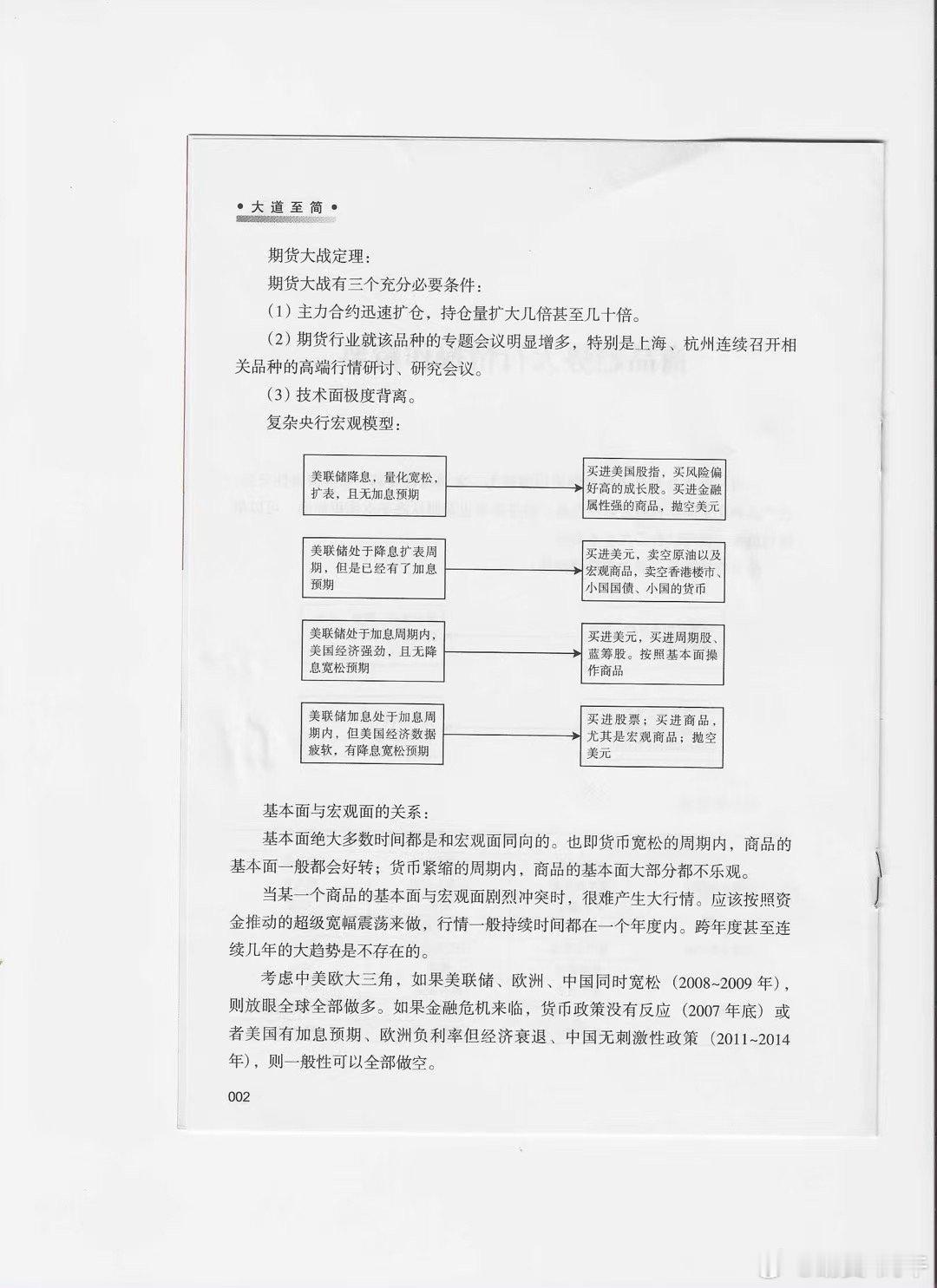 做期货精要的精华都在这里。这是扫描的。大家可以把这几页内容收藏到微信“收藏”里。随时可以查阅。这本书是2014年出版的。却能指导到历次的期货大战。包括2025年初的豆粕上涨,黄金上涨,欧线期货上涨。2025年中的焦煤上涨。远的2019,2020商品牛市,2022年4月翻空,2023上半年空6月翻多。逻辑一旦本质弄通,往后不管多少年都会适用。(另外,现在京东自营还能买到正版,价格低到16元人民币,建议买几本收藏,免得以后又买不到正版了)