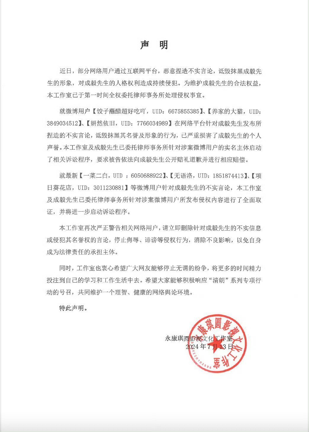 或许维权道阻且长,但正义从不缺席![加油] 微博、抖音、小红书……无论哪个平台,恶意诋毁辱骂的行为都将被追责,网络不是法外之地,成毅好刚,我们奉陪到底!