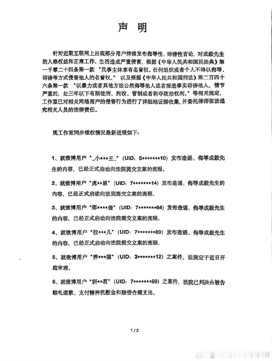 我去 成毅开始维权了 好几个id有点眼熟啊 成毅方将维权坚持到底