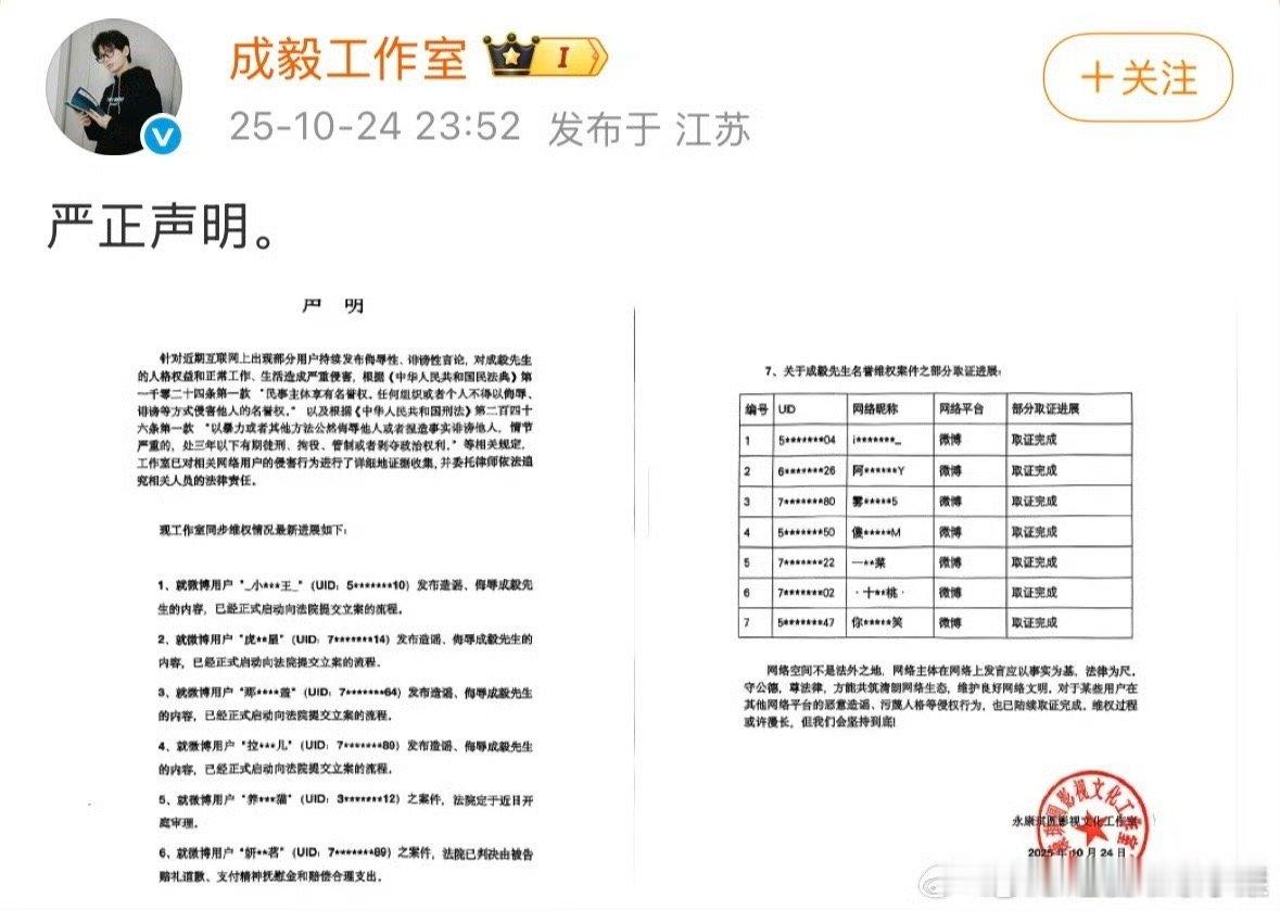 我去成毅开始维权了好几个id有点眼熟啊成毅方将维权坚持到底
