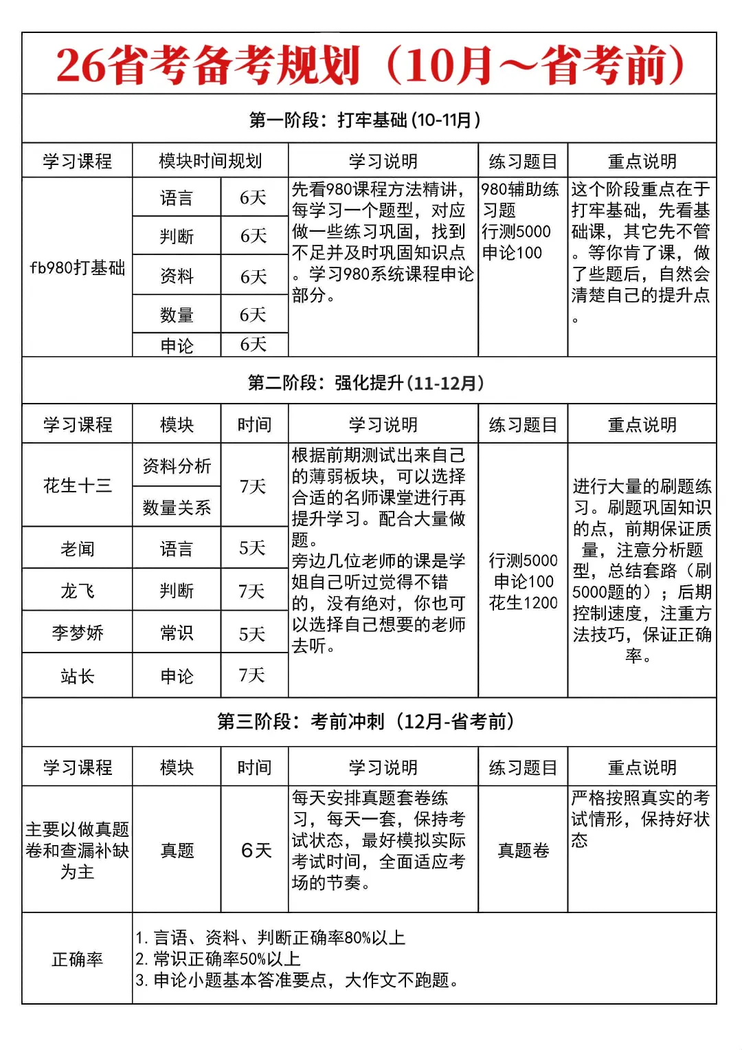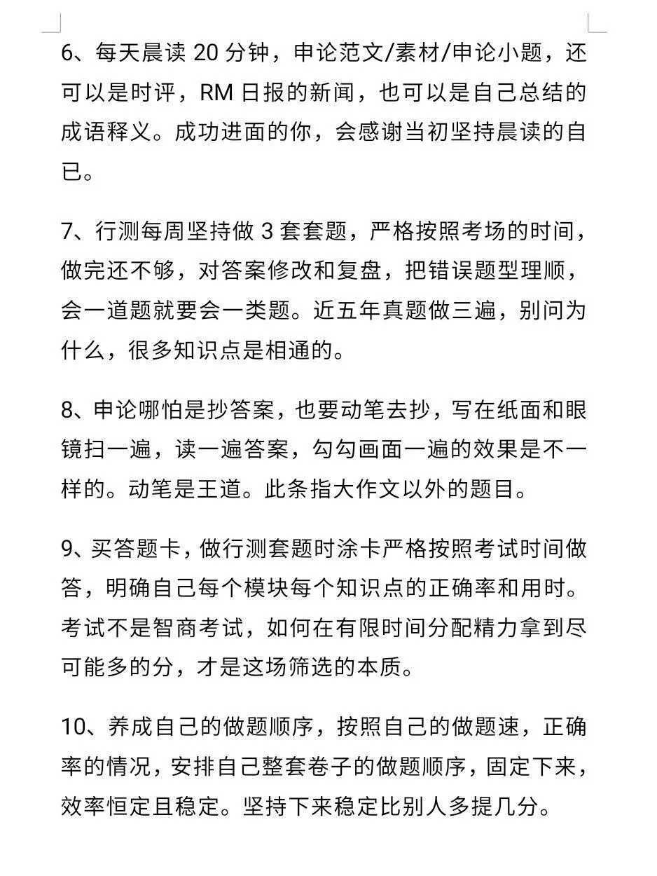 2、行测:最快的提分方法是刷真题+整理错题模块,复习推荐顺序:判断一言语一资料一数量一常识,重心放在前三个板块,正确率不低于80%后再去攻数量和常识