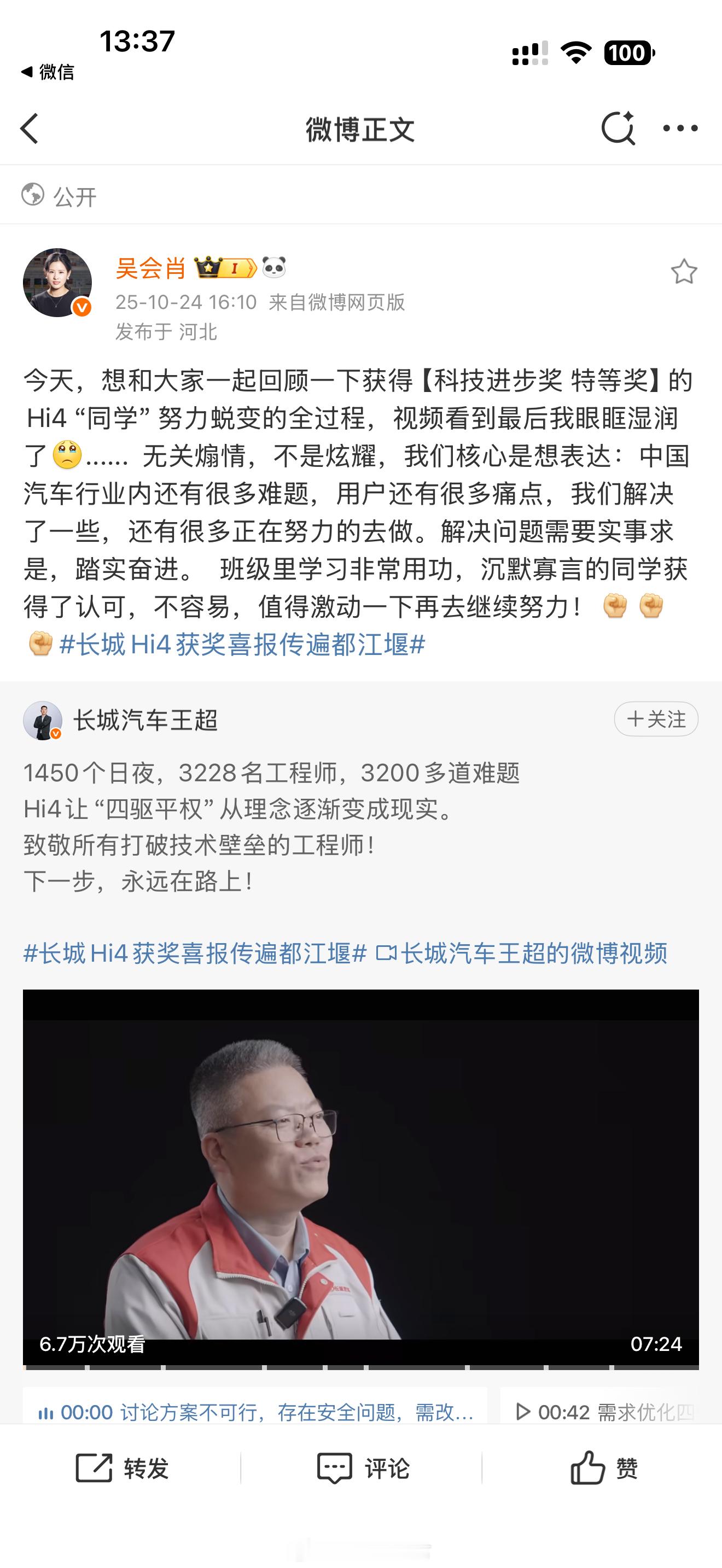 3228名工程师、上千次路测、数不清的复盘与推翻,Hi4不是一个架构,几千几万几十万测试,太辛苦了~长城Hi4获奖喜报传遍都江堰长城Hi4获科技进步奖特等奖