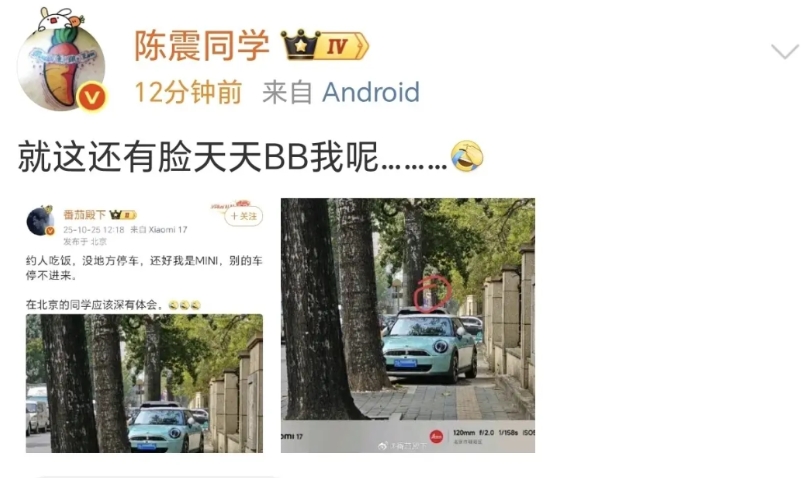 番茄殿下也就是潘达,应该是我见过最有行为艺术的友商前管理层人员,陈震这次点评他一点都不冤,潘达把车停在禁止停车的路段,逆行+人行道+盲道,Buff叠满了,还在这沾沾自喜呢?作为有点舆论影响力的公民,理应起到带头作用才对,怎么还得瑟上了。