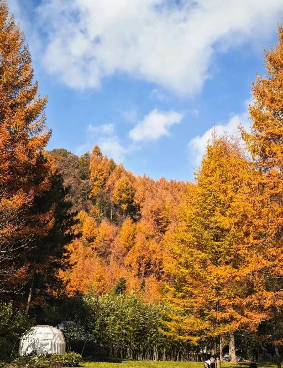 10月,曾家山秋意正浓,上万亩落叶松、野枫、青杠等树木交织依偎,将曾家山点染得五彩斑斓。走在山间步道上,脚下是落叶沙沙,抬头是红叶漫天,每一步都是秋天最治愈的模样! 若想触摸曾家山最浓烈的秋意,不妨沿着这几个地方深入探索!红叶以108种姿势铺满曾家山今秋第一波捡秋诱惑在曾家山(图源:@广元文旅、小红书Bonsoir) 📍 鸳鸯池森林公园:十月的鸳鸯池森林公园,已被秋色完全包裹!90%以上的森林覆盖率,让这里成为彩林的海洋! 📍望远山:望远山有着“川北最大的360°观景平台”的美誉,于此登高远眺,大美河山尽收眼底。 📍林家坝子:若想寻一处静谧之地,林家坝子的草坪绝对值得停留。这里地势平坦开阔,四周被绝色彩林环抱,躺下来看落叶慢悠悠飘,风一吹,叶子落在身上,这种温柔谁能顶得住? 📍龙神阁:龙神阁坐落于山峦之间,是登高赏秋的绝佳点位。红墙灰瓦与斑斓秋叶相映成趣,登上去既能把起伏的彩林尽收眼底,还能偶遇晨光云海。