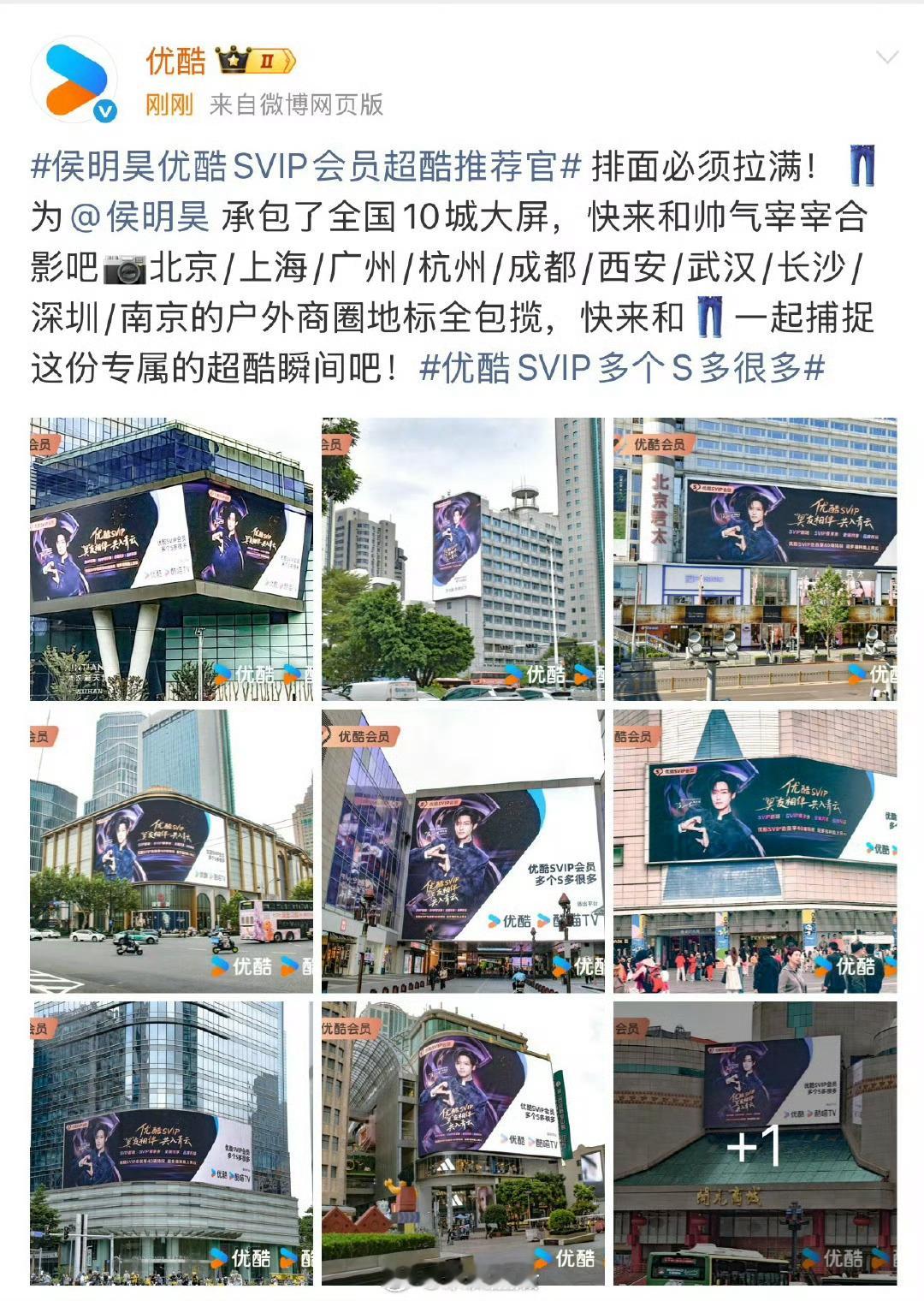 侯明昊入青云年榜11了,优酷还为SVIP会员推荐官侯明昊包下了10城大屏,这是对