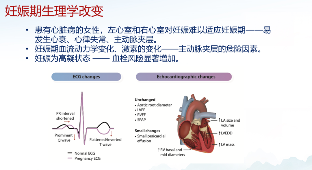 妊娠本身就是对女性心血管系统的一次“压力测试”。孕6周起,心排血量即大幅增加30%-50%,心率增长10-20次/分,血容量增加,而血管阻力下降,这一系列变化持续至产后6周才缓慢恢复(图2)。对于心脏健康的女性,这是一个生理过程;但对于已患有心脏病的女性,这额外的负荷极易成为“压垮骆驼的最后一根稻草”,诱发心力衰竭、恶性心律失常甚至主动脉夹层。
