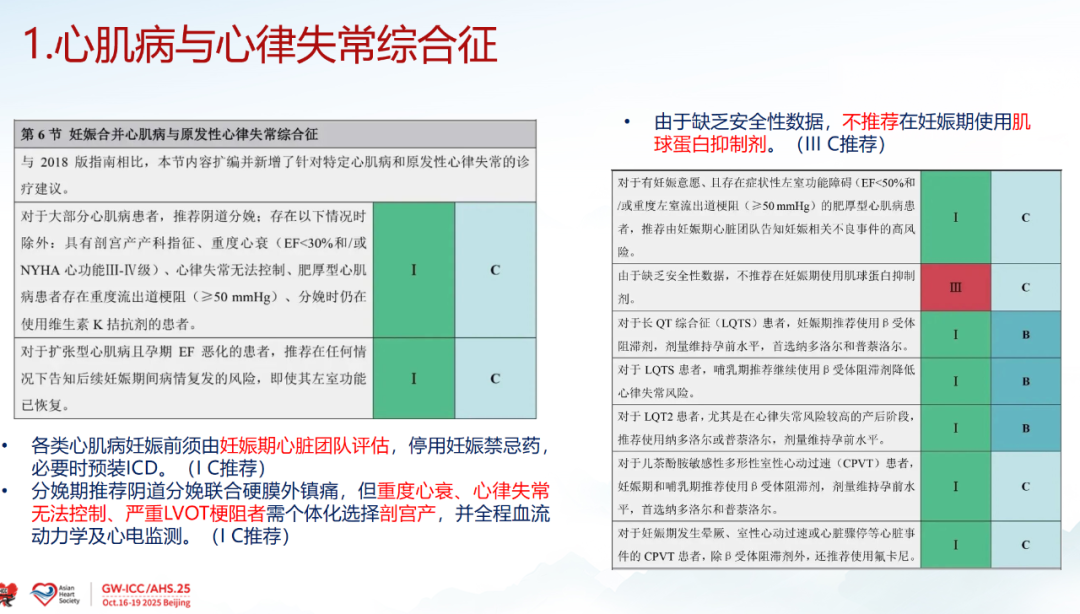 基于其复杂的病理生理机制,妊娠合并心脏病的临床管理必须因病制宜。在此方面,《2025年ESC妊娠期心血管疾病管理指南》[3]提供了核心框架,罗素新教授据此分享了针对常见病种的权威诊疗策略: