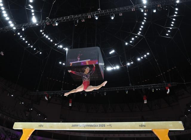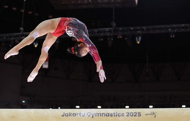 当日,在印度尼西亚雅加达举行的2025年国际体操联合会(FIG)竞技体操世锦赛女子平衡木决赛中,中国选手张清颖夺得冠军。