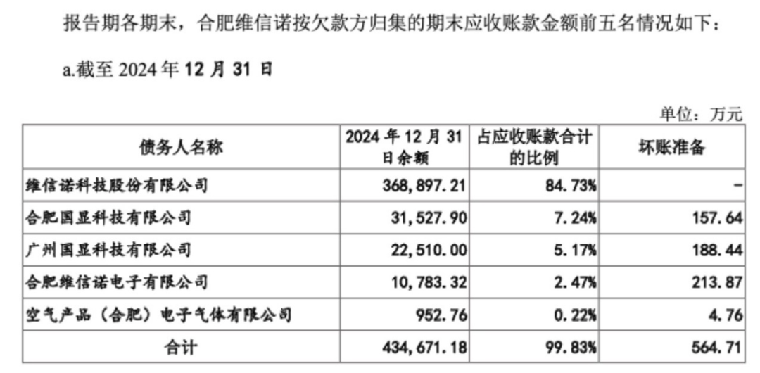 此外,合肥维信诺应收账款同样居高不下。2024年末公司应收账款余额43.54亿元,同比增长22.99%,其中约84.73%来自维信诺股份,7.24%来自合肥国显科技(维信诺持股20%),5.17%来自广州国显科技(维信诺持股17.86%),高度依赖关联方交易。