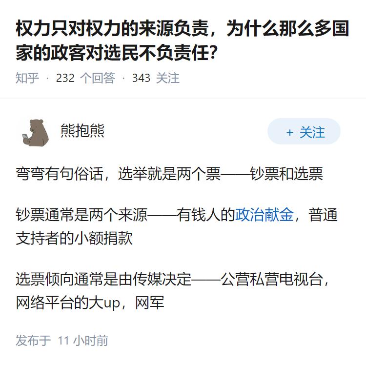 权力只对权力的来源负责,为什么那么多国家的政客对选民不负责任?