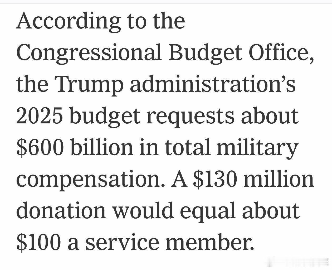 军人薪酬预算是$6000亿,$1.3亿只够每人发一百块钱