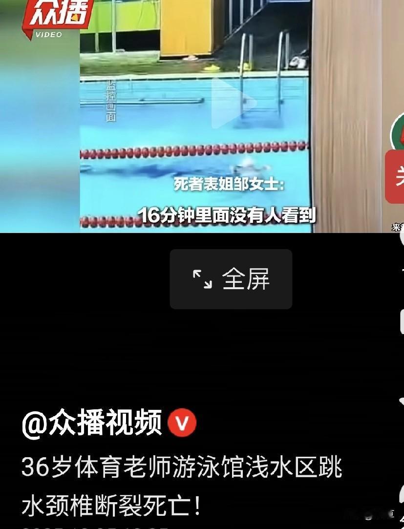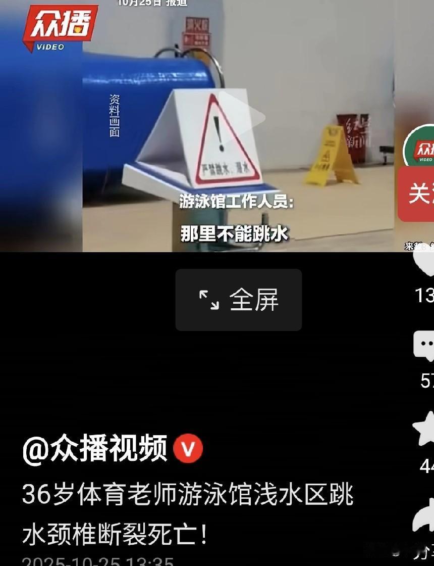 36岁的体育老师,体育馆潜水区跳水,颈椎断裂,当场死亡。 这起悲剧发生在10.1