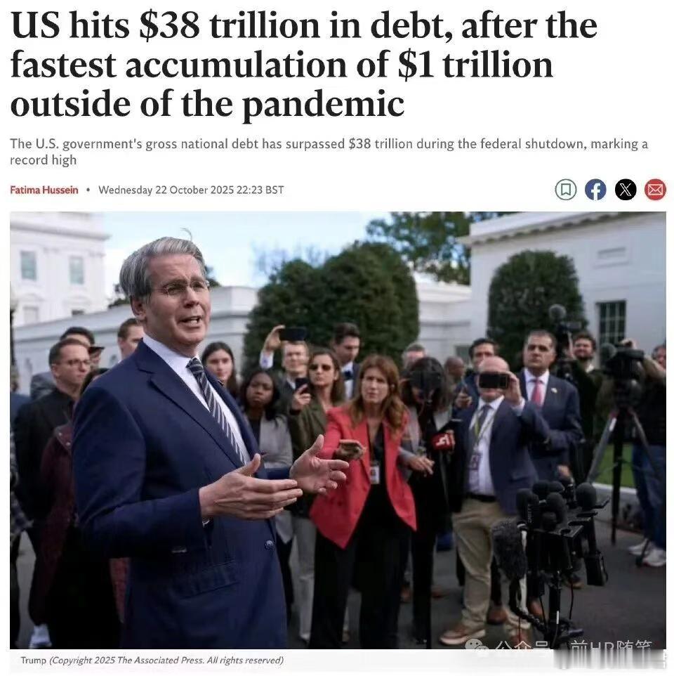 美国38万亿美元不是终点,而是越来越重的警钟。美国已经在债务悬崖边徘徊,精准施策、固本培元,正是中国实现高质量发展和真正超越美国经济的战略机遇。