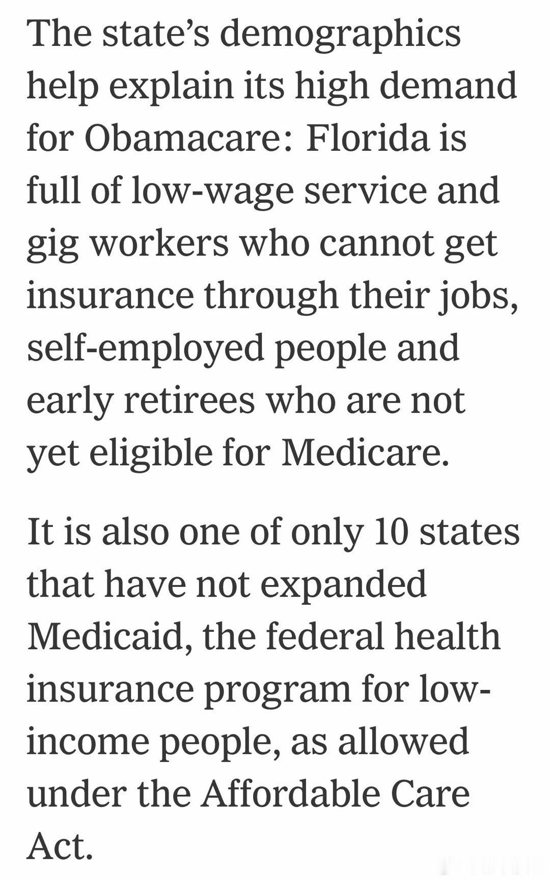 中低收入人群,联邦有专门Medicaid险,还有另外一笔补贴,但佛州等十个共和党州不加入,而且Trump的“又大又美”削减了这部分经费
