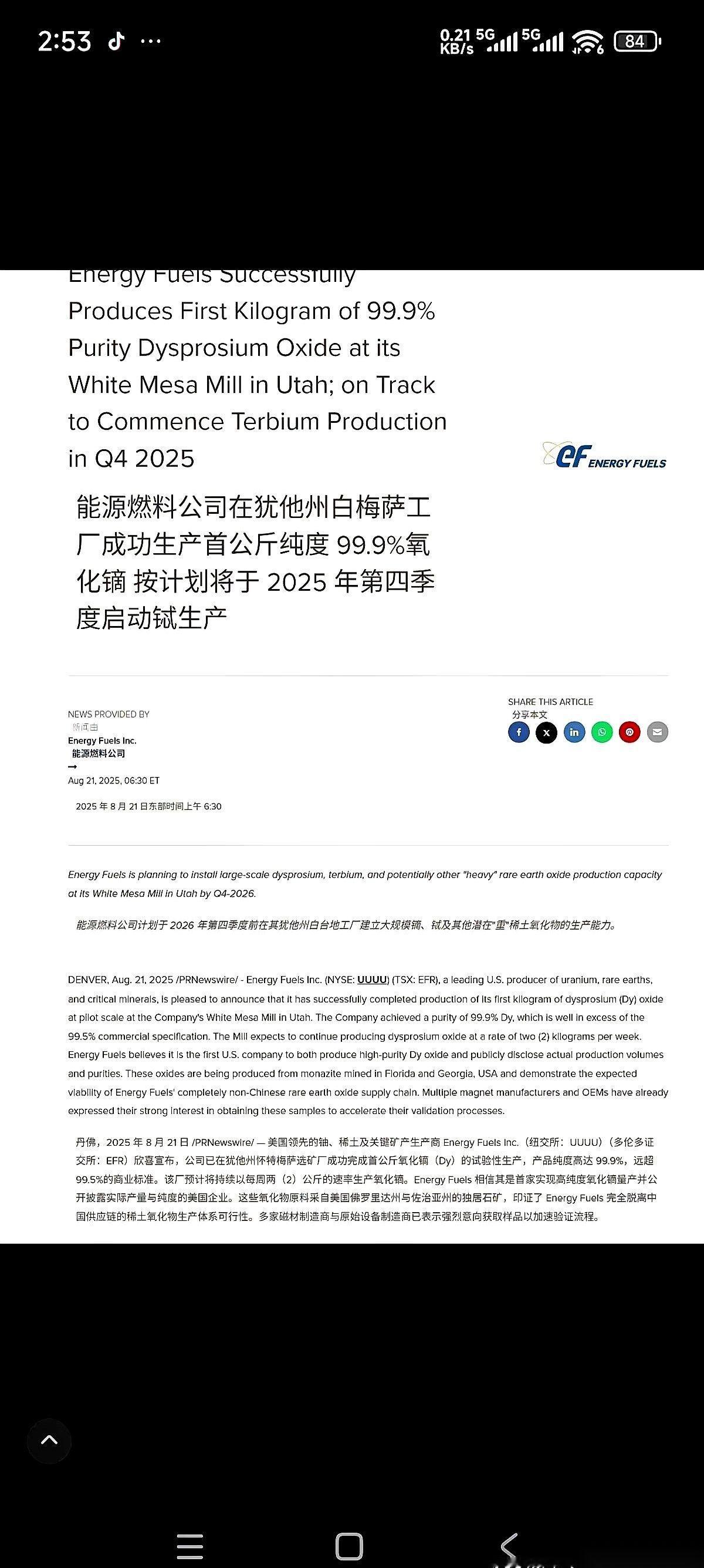 我天,刚刷到个新闻,差点把水喷出来。 美国那边一家公司,号称在稀土提纯上取得了“