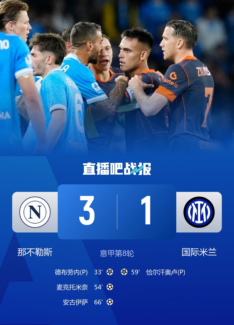 登顶!那不勒斯3-1终结国米4连胜迪洛伦佐争议造点丁丁点射+伤退