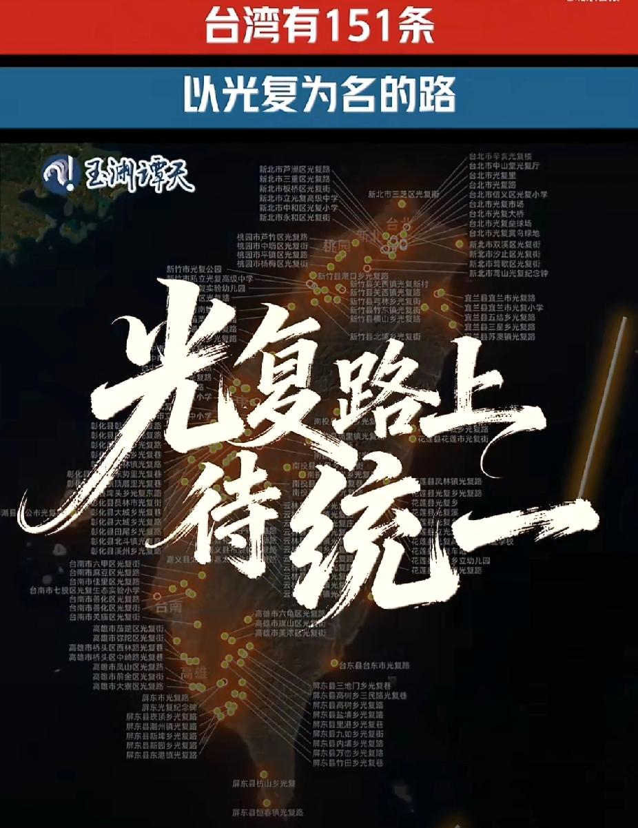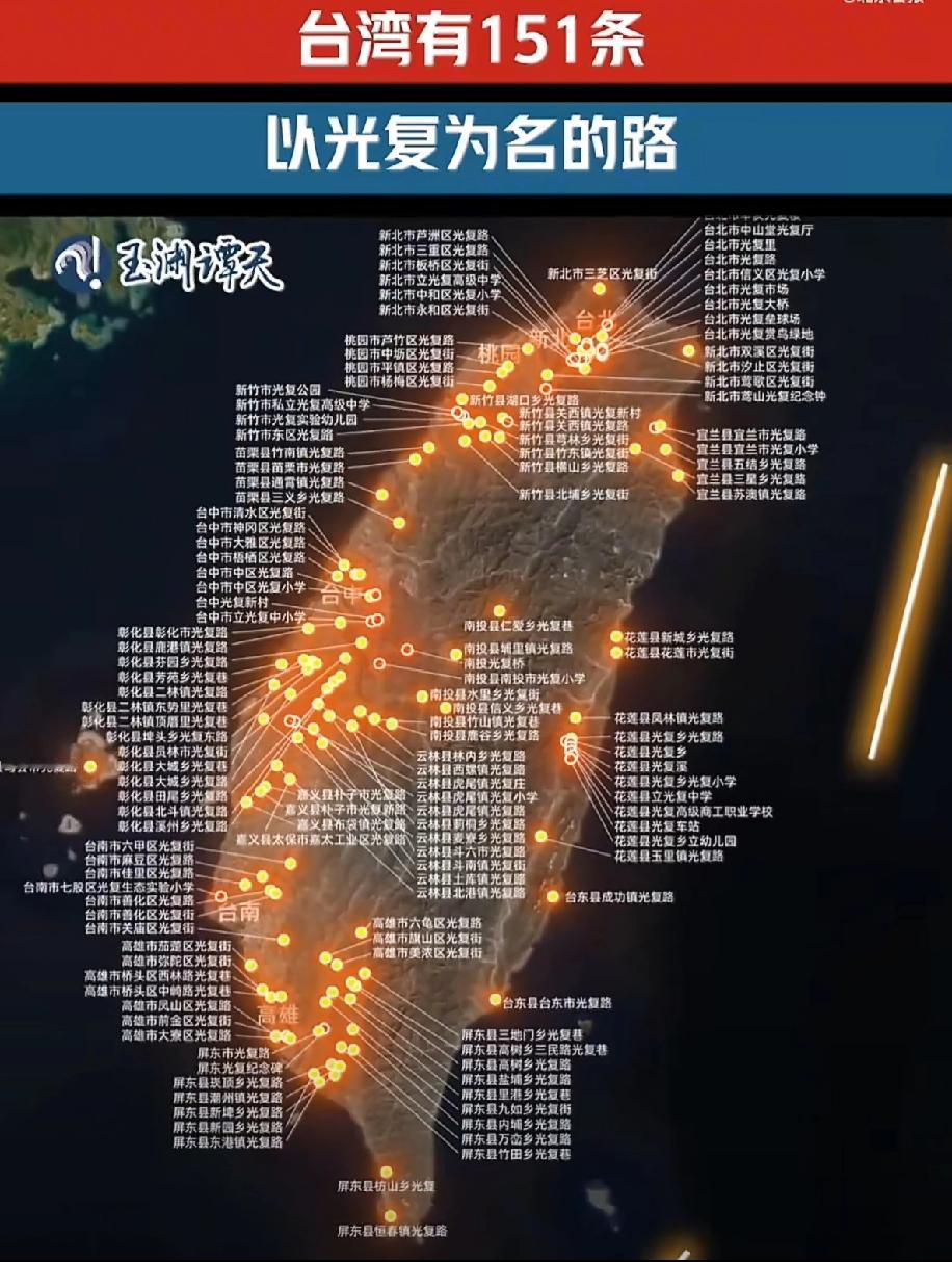 家人们,你们知道在台湾有多少条以“光复”为名的道路吗? 有151条呢! 从台北