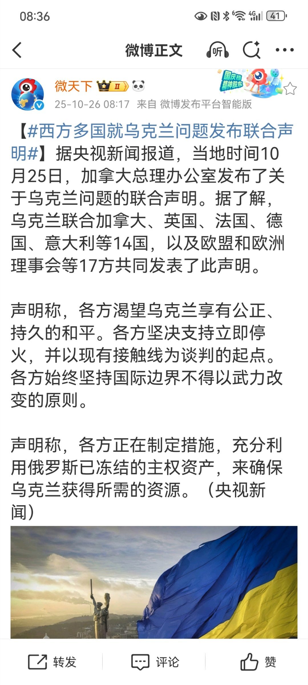 【西方多国就乌克兰问题发布联合声明】国际边界不得以武力改变的原则与以当前战线为谈判起点的提议,共同构成了俄乌和谈进程中的核心矛盾。
