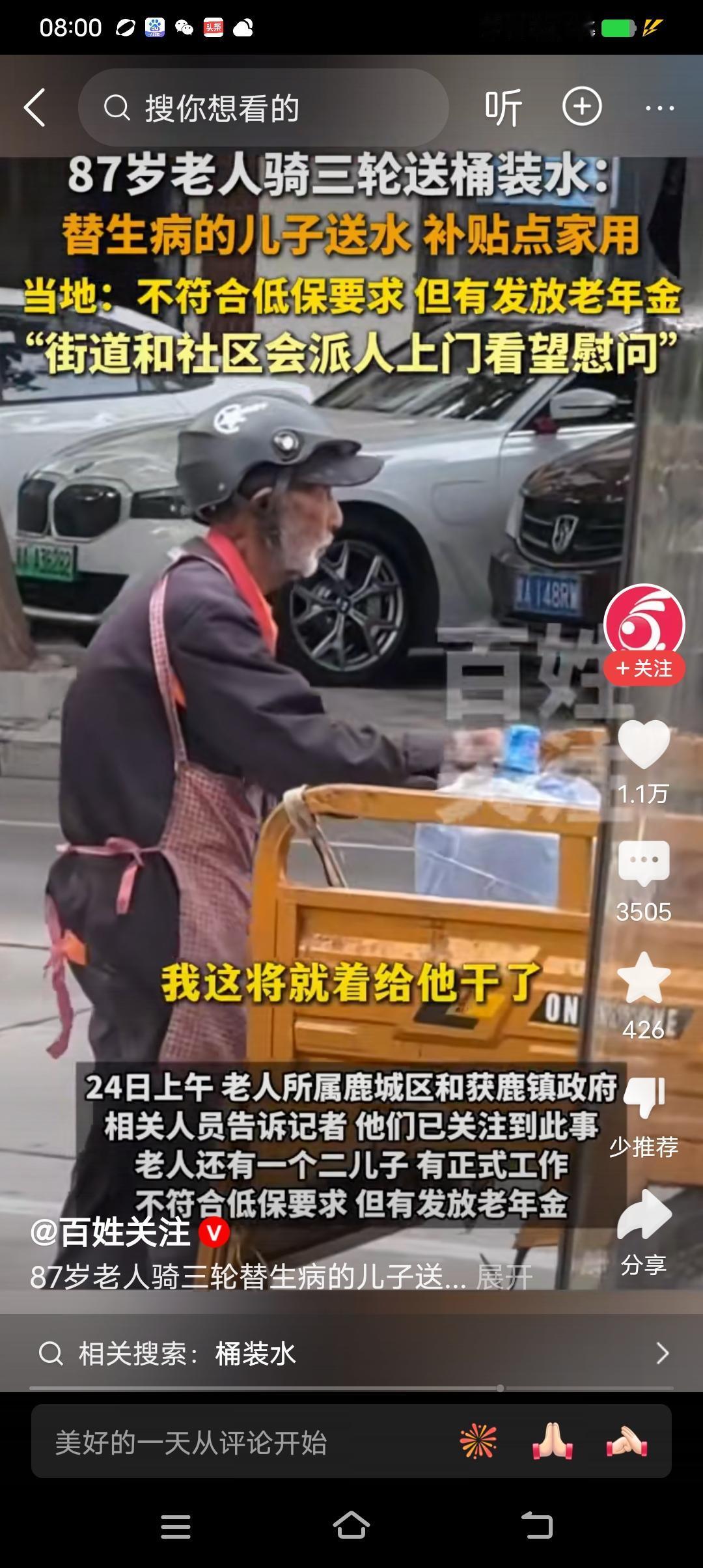 87岁老人替生病的儿子送水,人间父子情,令人泪目。欢迎大家留言文明交流!