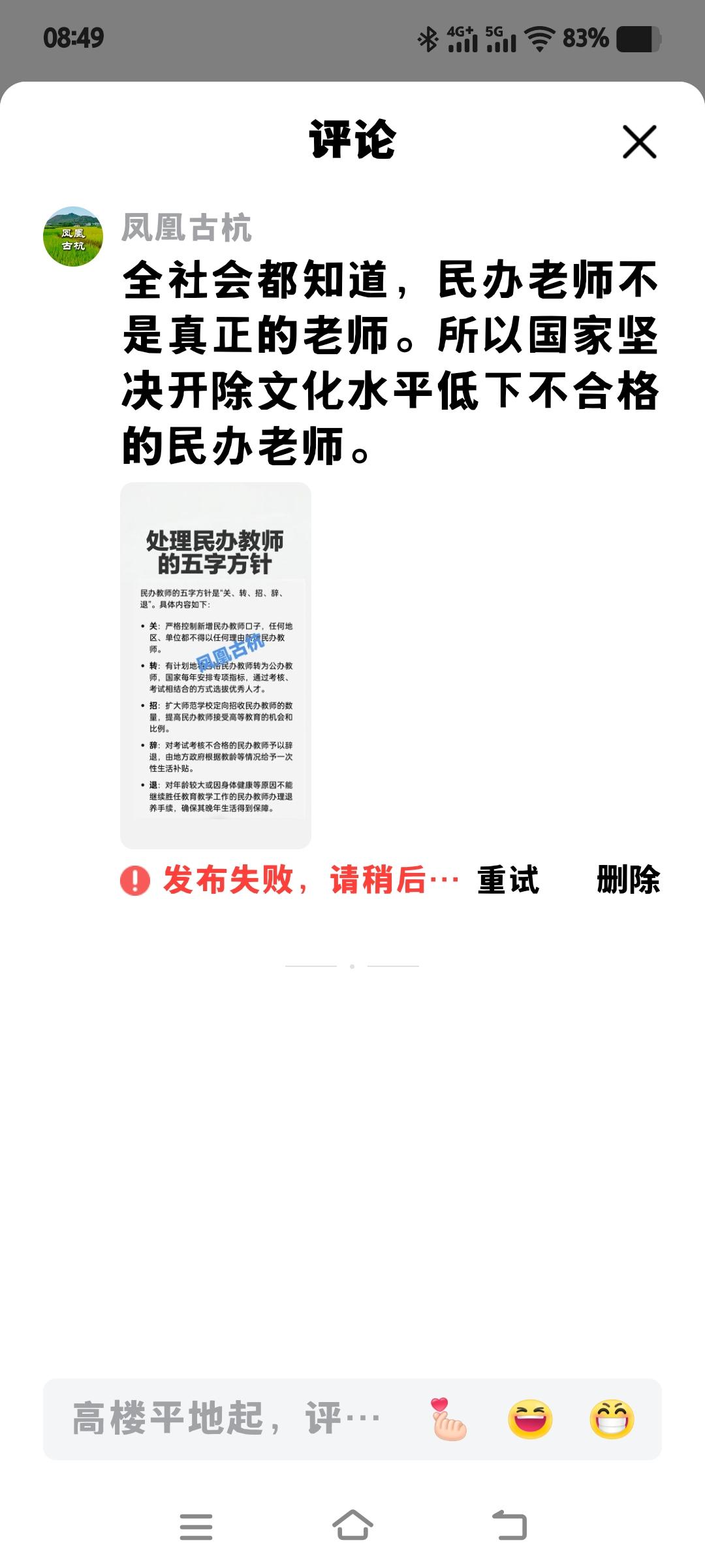 全社会都知道,民办老师不是真正的老师。二三十年前,整顿民办老师队伍时,通过考试考核体检,合格的转正为编制公办教师了。而不合格的民办老师则一律开除回家务农了。不能再让他们站着讲台误人子弟了,这是一项民心政策,为教育事业大发展奠定了坚实的基础。真是大快人心。