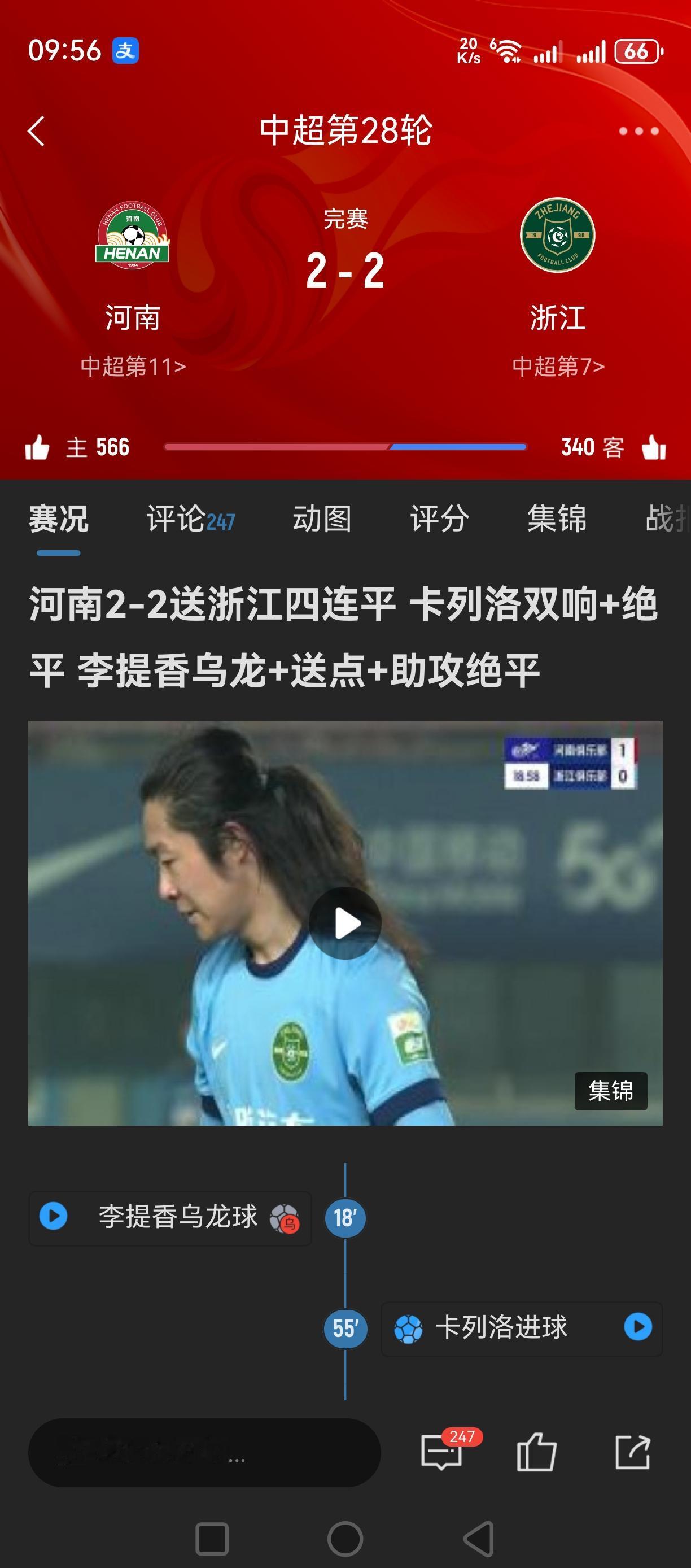 王珏栋神仙球助攻!这球传的分毫不差!队友一捅,有了![赞][赞][赞] 已经好多轮没有进球的王珏栋,助攻数倒上蹭蹭往上涨! 另外,浙江队真是好玩,先丢球,大比分落后,再追,最后绝平! 这剧情,这赛季,多少场了?![捂脸][捂脸][捂脸][赞][赞][赞]