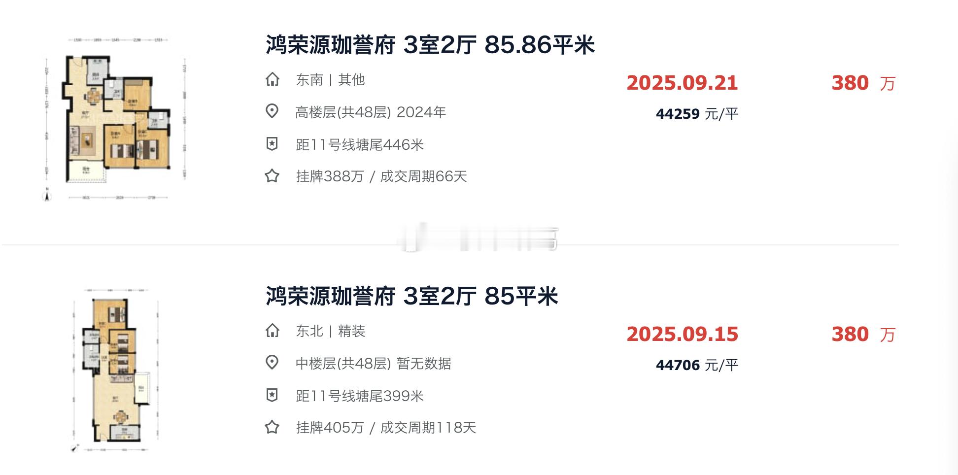 深圳宝安鸿荣源珈誉府,目前在售新房均价约4.9万,二手房卖4.4万。。