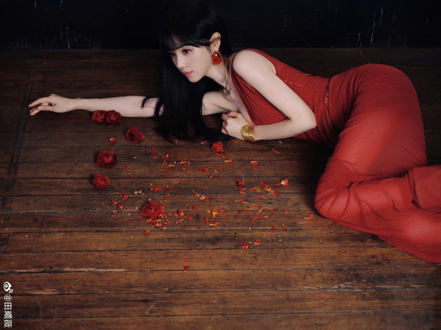 田曦薇上海维密活动路透,红色单纱造型长裙,绽放的红玫瑰🌹[污][污][污]