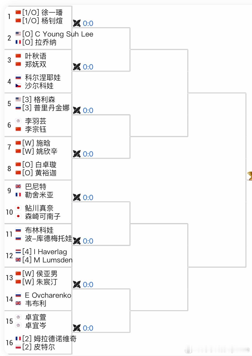 🇨🇳侯亚男/🇨🇳朱宸汀 vs🇷🇺Ovcharenko/🇬🇧韦布利