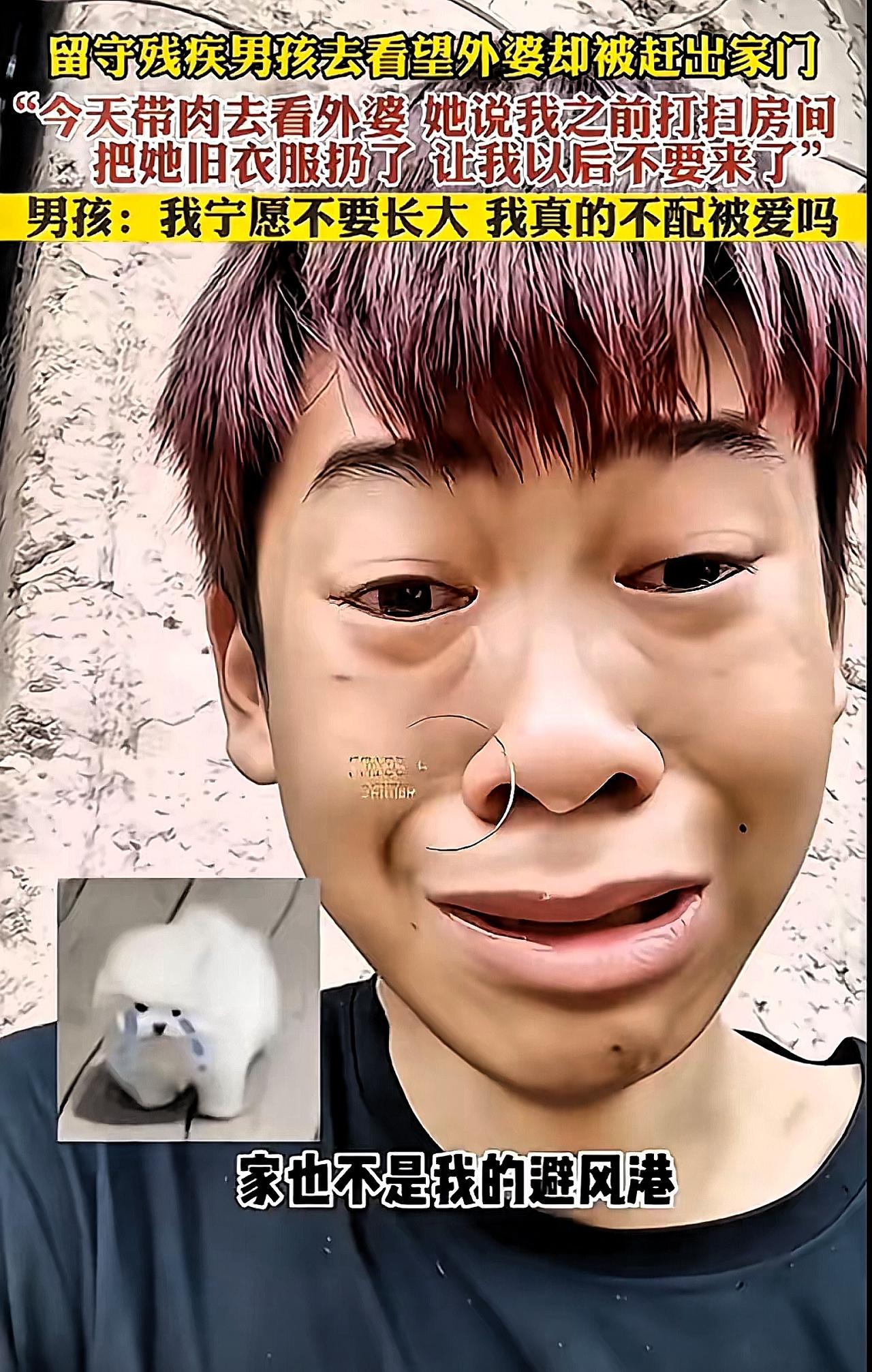 带肉看外婆却被赶出门,残疾男孩的疑问戳痛多少人 留守残疾男孩揣着肉去看外婆,换来的却是一句“以后别来了”——就因为他之前打扫房间,误扔了外婆伯的衣服。那句“我宁愿不要长大,我真的不配被爱吗”,看得人鼻子发酸。 这哪是简单的误会?是亲情里最让人难过的“看不见”:男孩拖着残疾的身体,记挂着外婆,特意带肉上门,这份心意没人看见;他默默打扫房间,却因一个小失误被全盘否定。亲情里最珍贵的,从来不是完美无错,是能看见对方的付出,接住对方的脆弱。 外婆或许还在气头上,可这句话像根刺,扎进了本就缺爱的孩子心里。多少家庭矛盾,都是因为被一时情绪裹着,忘了好好说话,忘了看看眼前人的心。 你们有没有过被亲人误会的时刻?那句没说出口的“我其实很在意你”,后来补上了吗?