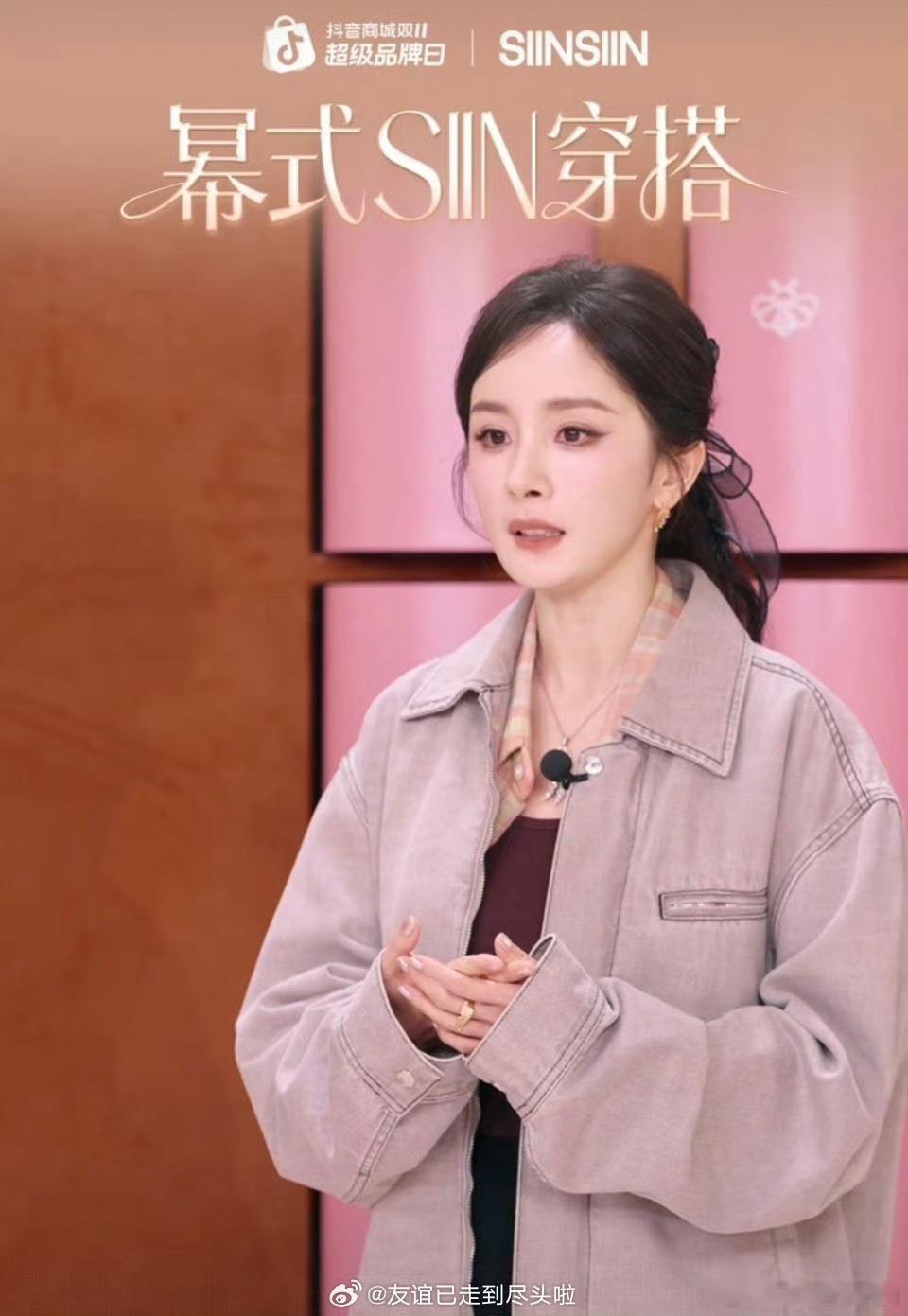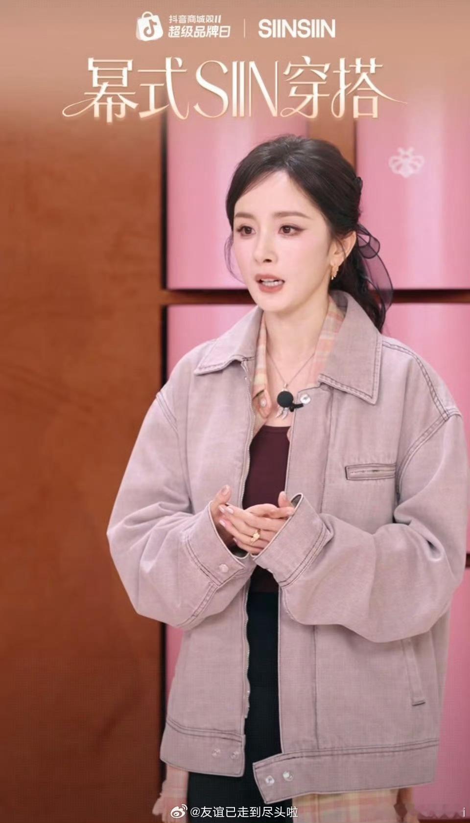 杨幂昨晚直播活动造型🈶休闲风格,状态美美美