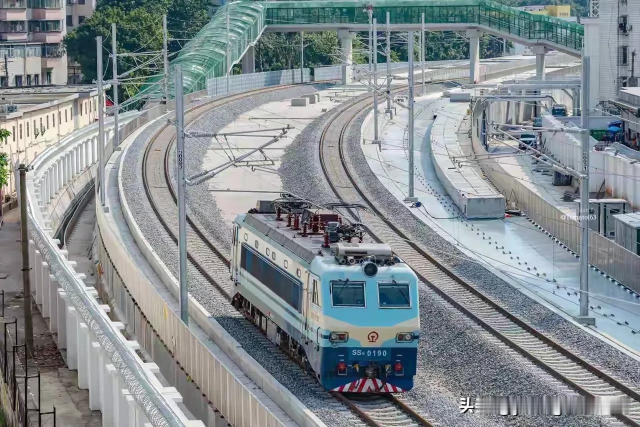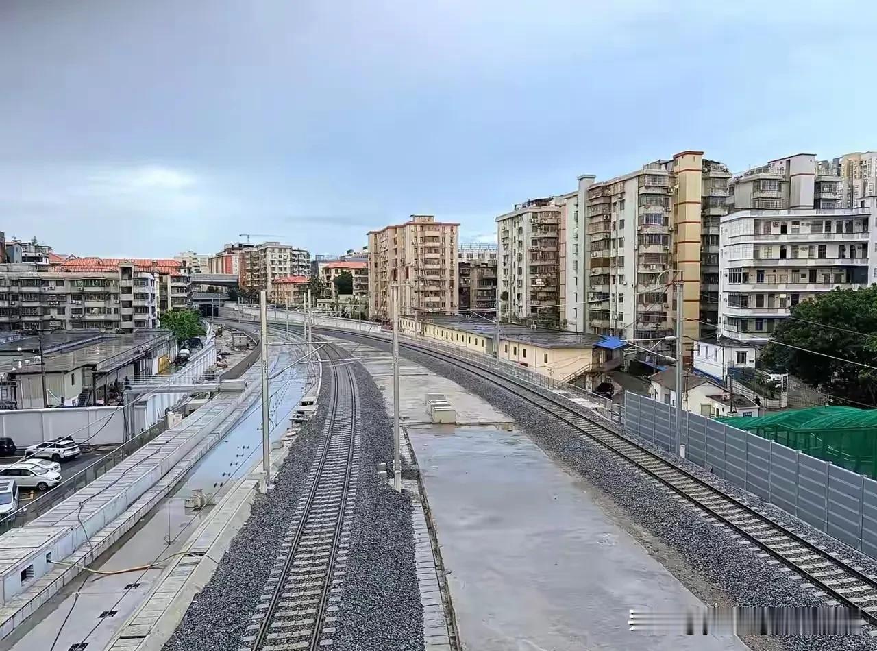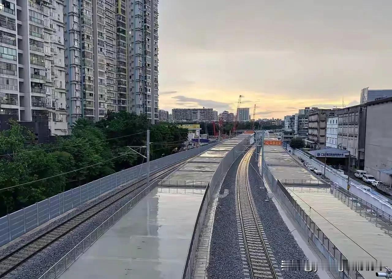 广州城内,已经消失的广州西站的今昔对比。广州西站距离广州火车站南侧大约3km,凭借着车站内的一个大弯道,很好的展现了通过列车的完美弧形,因此也成为众多火车迷拍车打卡的地点。随着广湛高铁的施工,广州西站只能拆除,原有的广茂铁路已经被新修的高铁所覆盖。从现在的画面来看,新修的广湛高铁弯道半径曲线比原来的广茂铁路要大许多,估计这也是为满足列车高速行驶的需要。随着车站的消失,也让曾经咆哮的东风4B内燃机车不再进入广州城区。未来取而代之的将是一列列更加现代化的高速动车组。