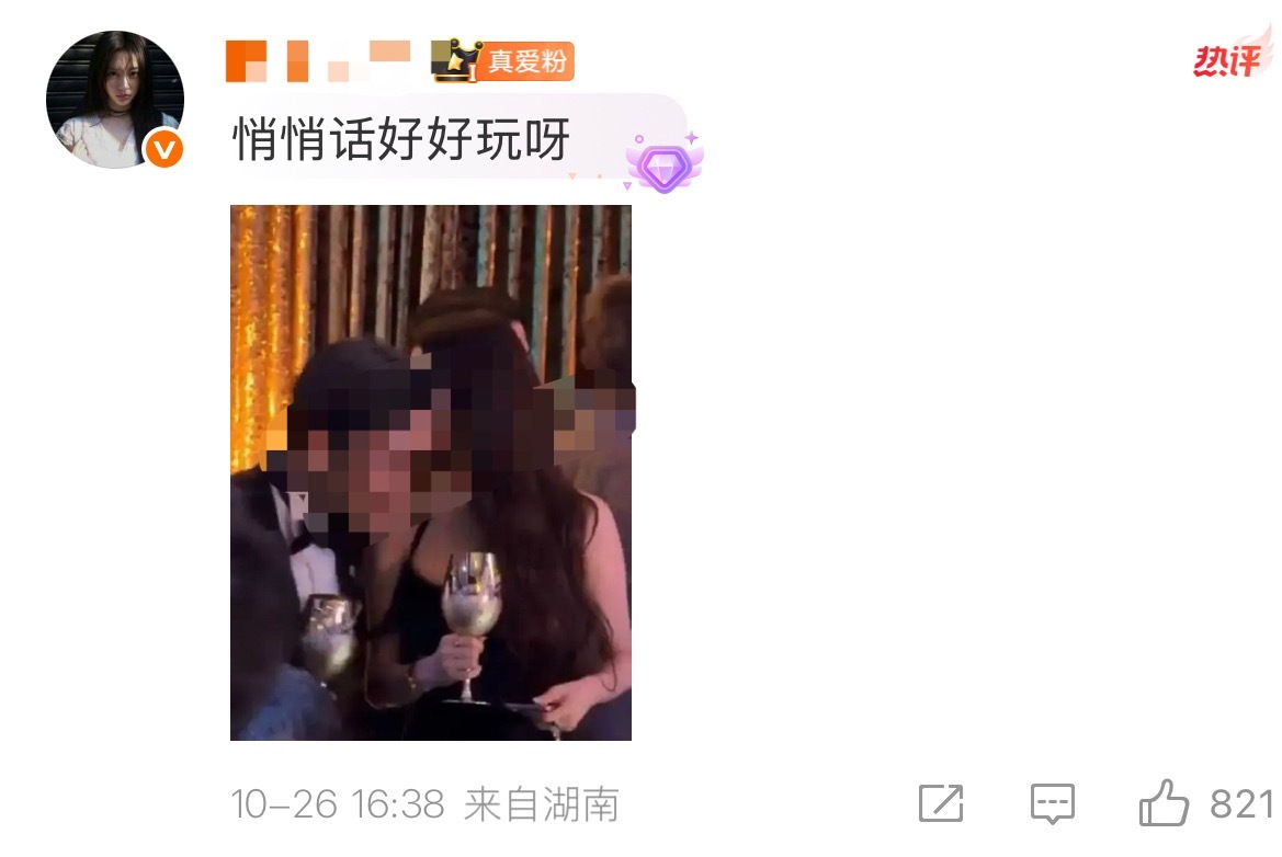 刘亦菲喝醉酒微醺的状态被拍到,脸上已经泛起了红晕,被拍到后眼神微怒