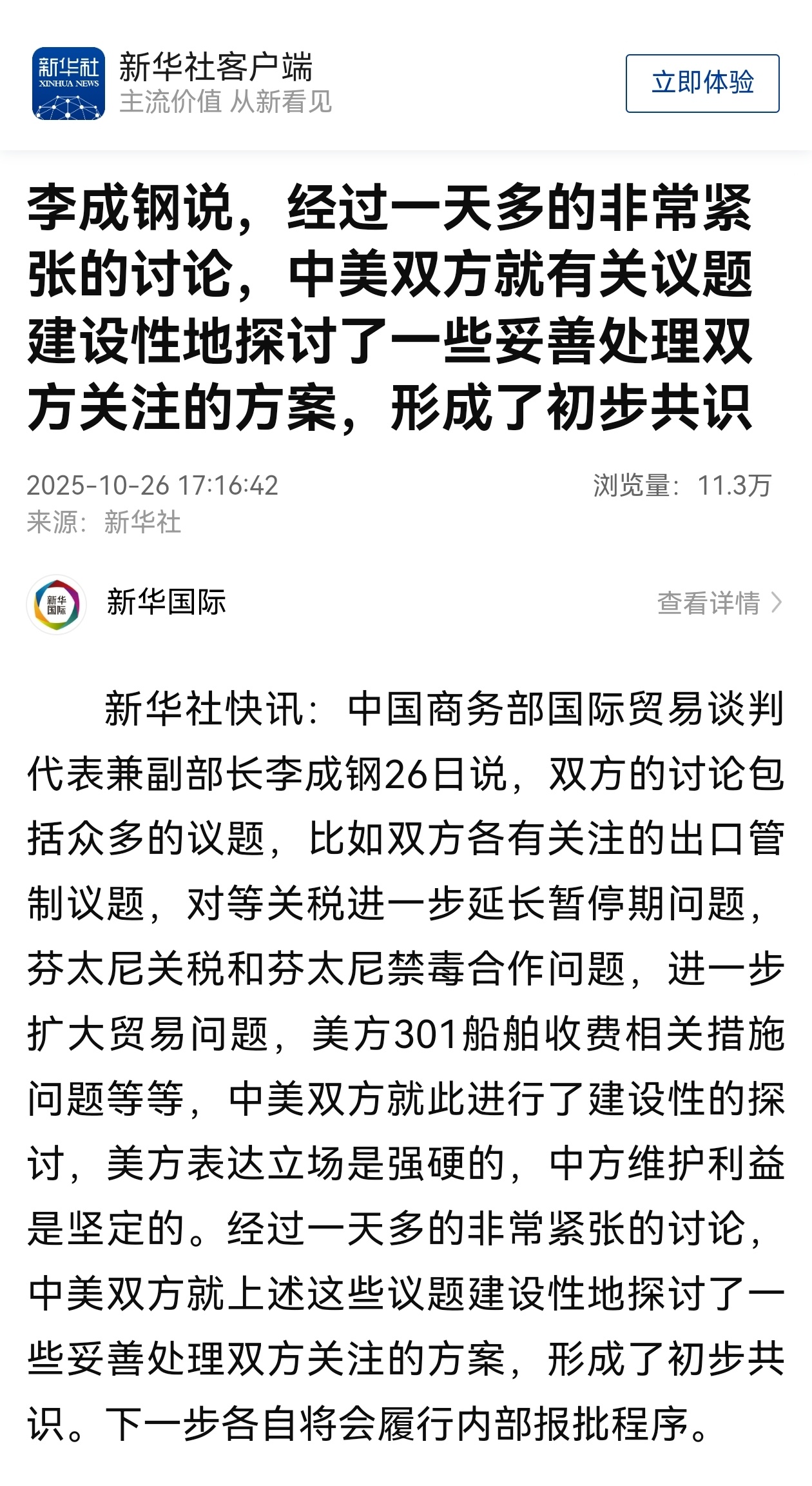 李成钢说,经过一天多的非常紧张的讨论,中美双方就有关议题建设性地探讨了一些妥善处理双方关注的方案,形成了初步共识。