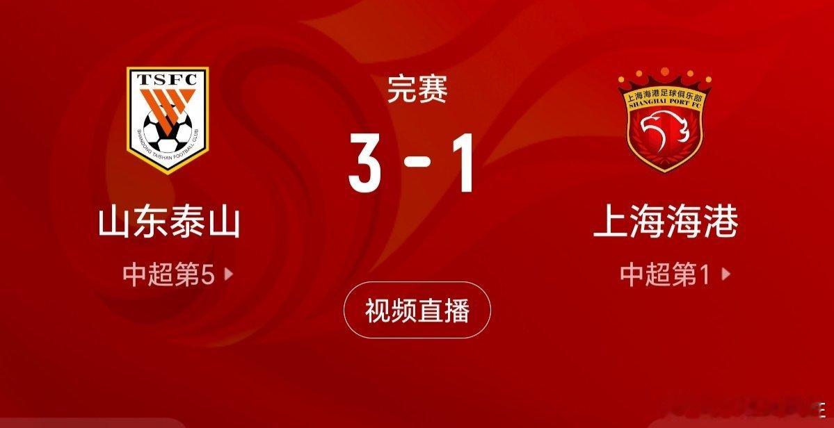 中超联赛山东泰山vs上海海港山东泰山3比1上海海港