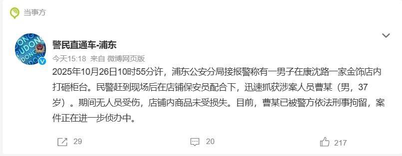 上海男子在金店打砸柜台被刑拘头号创作者激励计划一般真要敢抢金店的劫匪,肯定有自己的交通工具,还要很多人配合,并且携带先进武器等等;但这个劫匪只是一个人,不仅在光天化日之下,而且还在上海这样大城市的闹市区,还没有携带枪等武器,实在太出乎人的意料。此人用锤子砸黄金柜台的时候,周围还站满了围观者,他还是气定神闲地在那抢劫,一点不着急似乎在等警察来抓他。此事只有两个可能,要不就是他精神有问题,要不就是他故意想进监狱。就看后续审讯和通报的情况了。