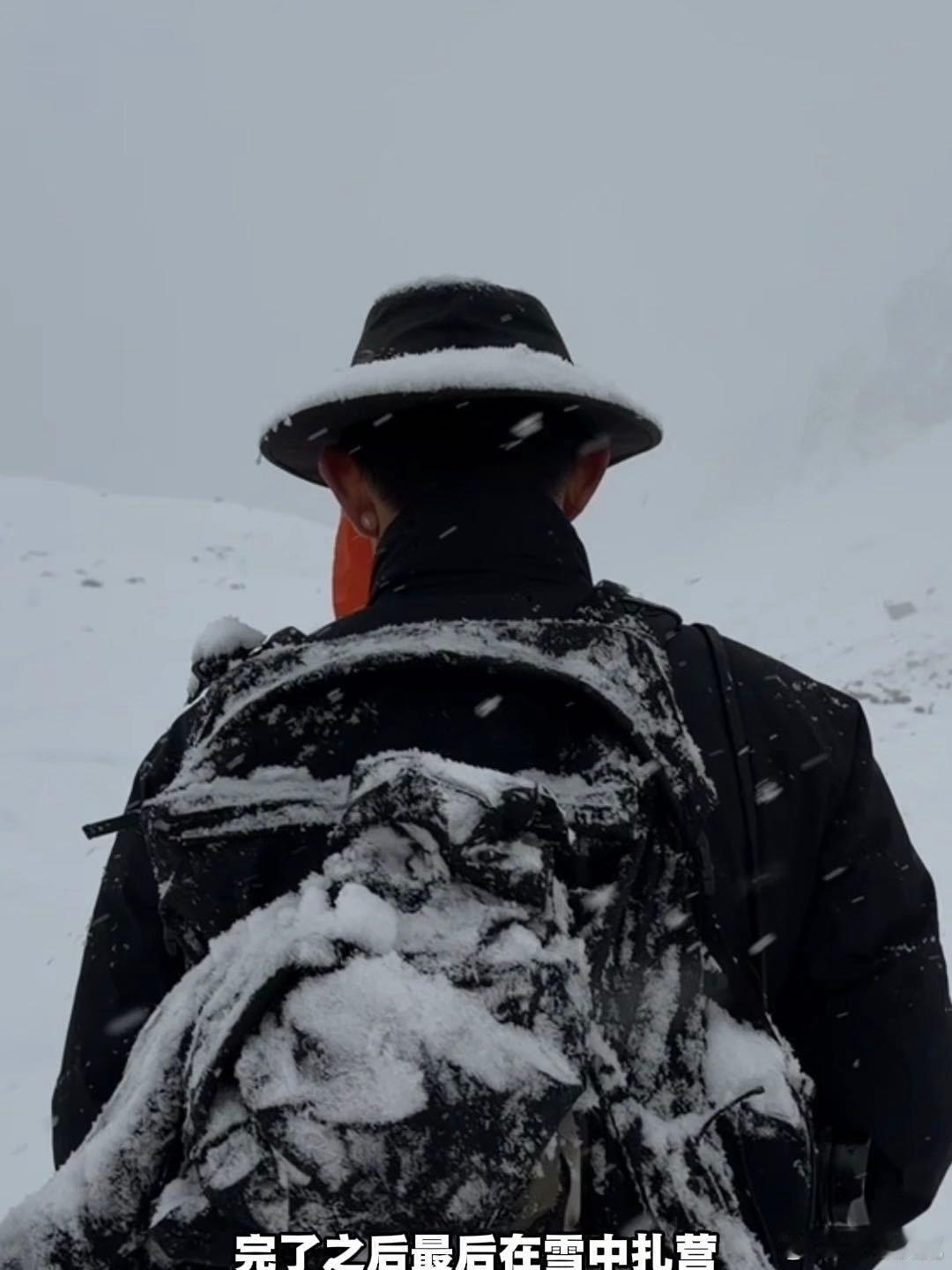 陈坤在大雪中徒步走了八小时从松潘客栈扎进雪山,8小时风雪浸肩,背包凝霜仍向前。1