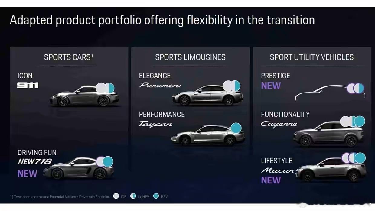 不过,停产油车并不意味着加码电车,恰恰相反,保时捷放缓了电动化力度,不仅放弃全新旗舰SUV(K1)的纯电版本,还会推出更多燃油和插混车型,包括基于PPC平台打造的Macan继任者(M1),兼容纯燃油和插混动力,2028发布