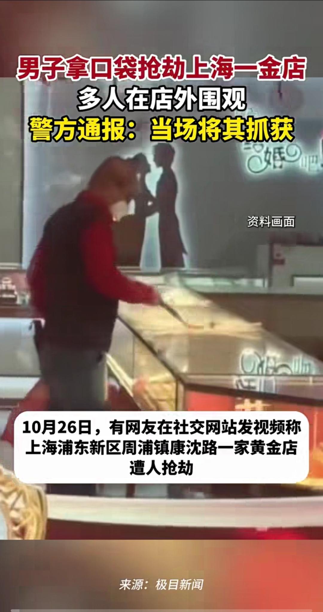 这人是想吃牢饭不成? 近日,一男子大白天戴着眼镜,手拿口袋,窜到上海某金店砸柜台,抢劫黄金,门外多人在围观。 接到报案后,该名男子当场被抓获并刑拘。 我就想了,这种人是不是港片看多了,脑袋瓜儿浸水了吗?大白天搞抢劫,是不是嫌家里的热饭热汤儿不可口,想进去踩缝纫机换口饭吃? 个人观点,仅供参考!
