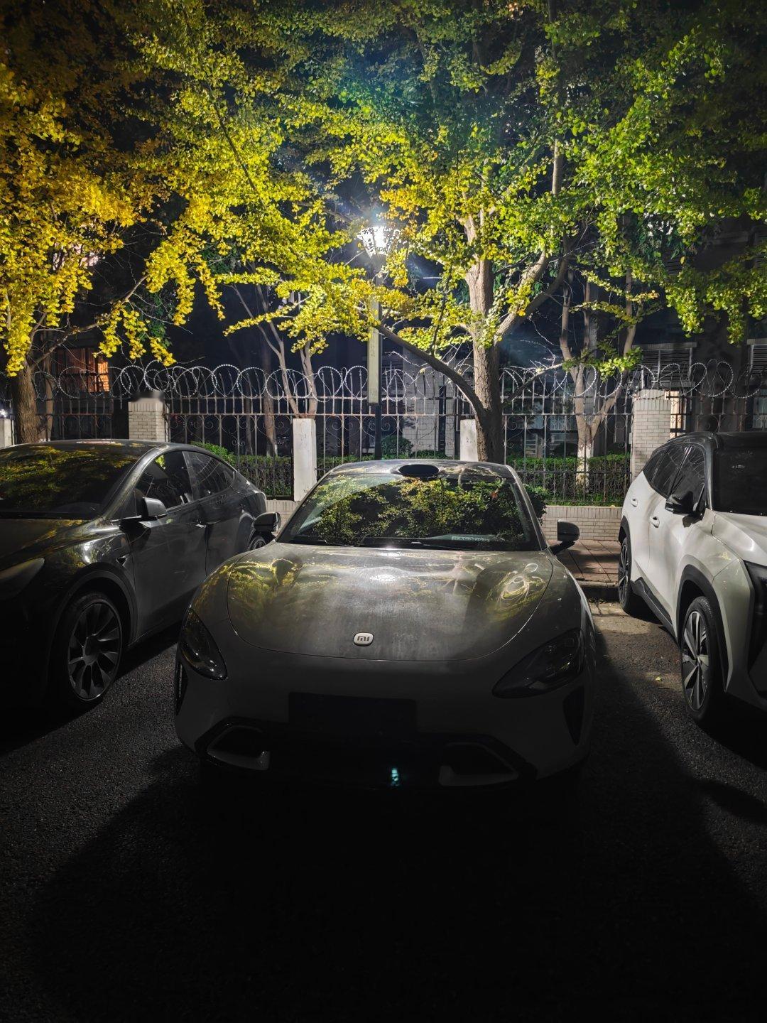 走了200米,碰到两台小米汽车。