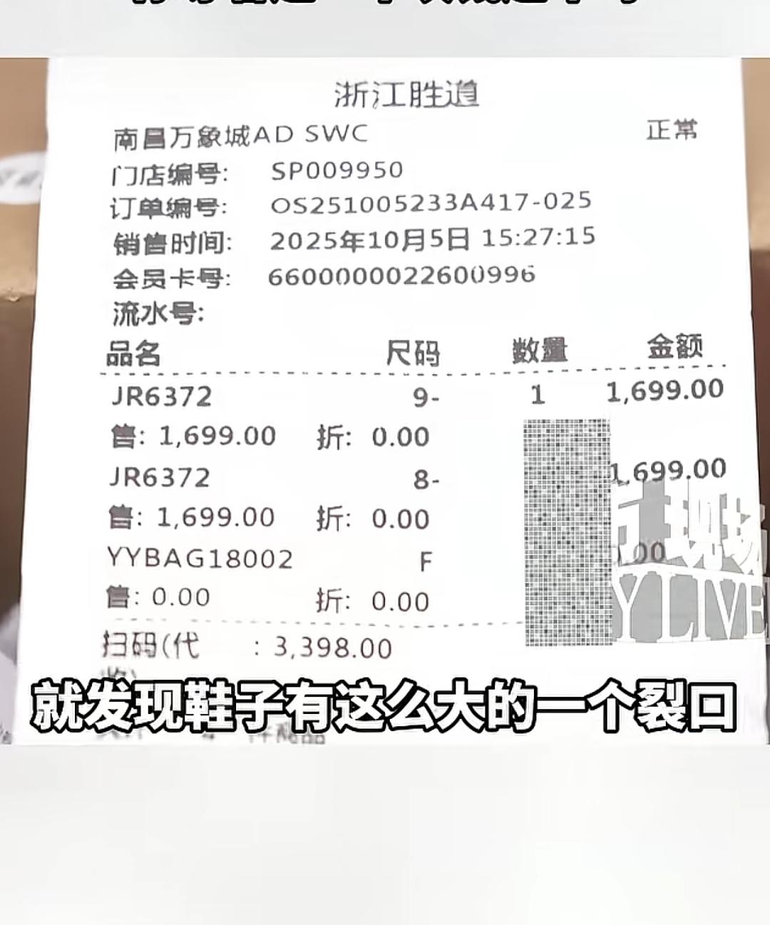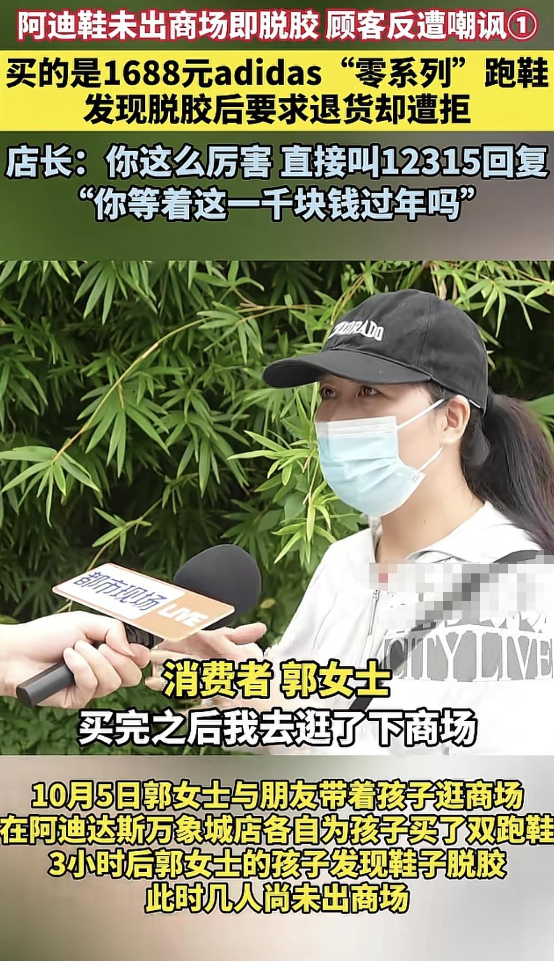 大南昌奇葩是真多,南昌万象城一个卖鞋的牛成啥样了,反讽客人“你等会这一千块钱过年吗”,咋的,你不也等着这单提成过日子吗? 别说你一个小店长,现在阿迪的CEO都颠颠的跑中国来,一个小小店长算啥,至少人家还能在店里消费得起3千多,你自己呢,买的起吗你! 看样子干倒阿迪就差一个你了! 买了还未出商场,要不是孩子打开看,客户都不会知道鞋子有一个脱胶了,这么大一个裂口子,作为店长,客户找回来了,至少得承认商品确实有问题,再给客户出解决方案,或者上报总部,这逼着人家自己去投诉,还说“你找12315,这么牛,他们怎么不给你解决”,这是大品牌的待客之道吗,这样服务客户的人是怎么当上店长的,真离谱,真是打工打久了忘了自己干嘛的了! 质量三包政策是写着好玩的吗? 支持这位女士维权到底,这已经不是一千块的问题了,是这口气咽不下去!