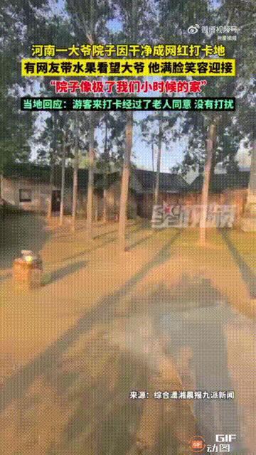 河南新乡一位大爷家里有一个院子,他每天都把院子打扫得很干净,有游客路过时拍下视频上传到网络,没想到却因此走红,引来很多游客拍照打卡,因为他们觉得这个院子,很像自己小时候家的样子,充满了回忆的感觉,也有一些游客会专门带着水果和礼品前来探望大爷,因为觉得大爷的家里太干净了,缺少了很多生活气息,而大爷每次都开心地迎接游客,并没有因此受到打扰,对此当地相关部门表示,这位大爷是五保户,乡里会有资金帮助,网友看完这段视频,都觉得这位大爷家的院子真是太好看了,除了院子很大很干净之外,那几棵树错落有致,也别有一番意境,相信如果小时候在这里玩耍,一定会充满欢乐,当然游客前去打卡拍照无可厚非,只是不要过度惊扰了大爷,毕竟这是人家的私人地域,而不是公共景区,相信这么爱干净的大爷,也会把自己照顾得很好,最后他坐在院子里荡秋千的画面,确实让人感受到了美好。大家怎么看呢?