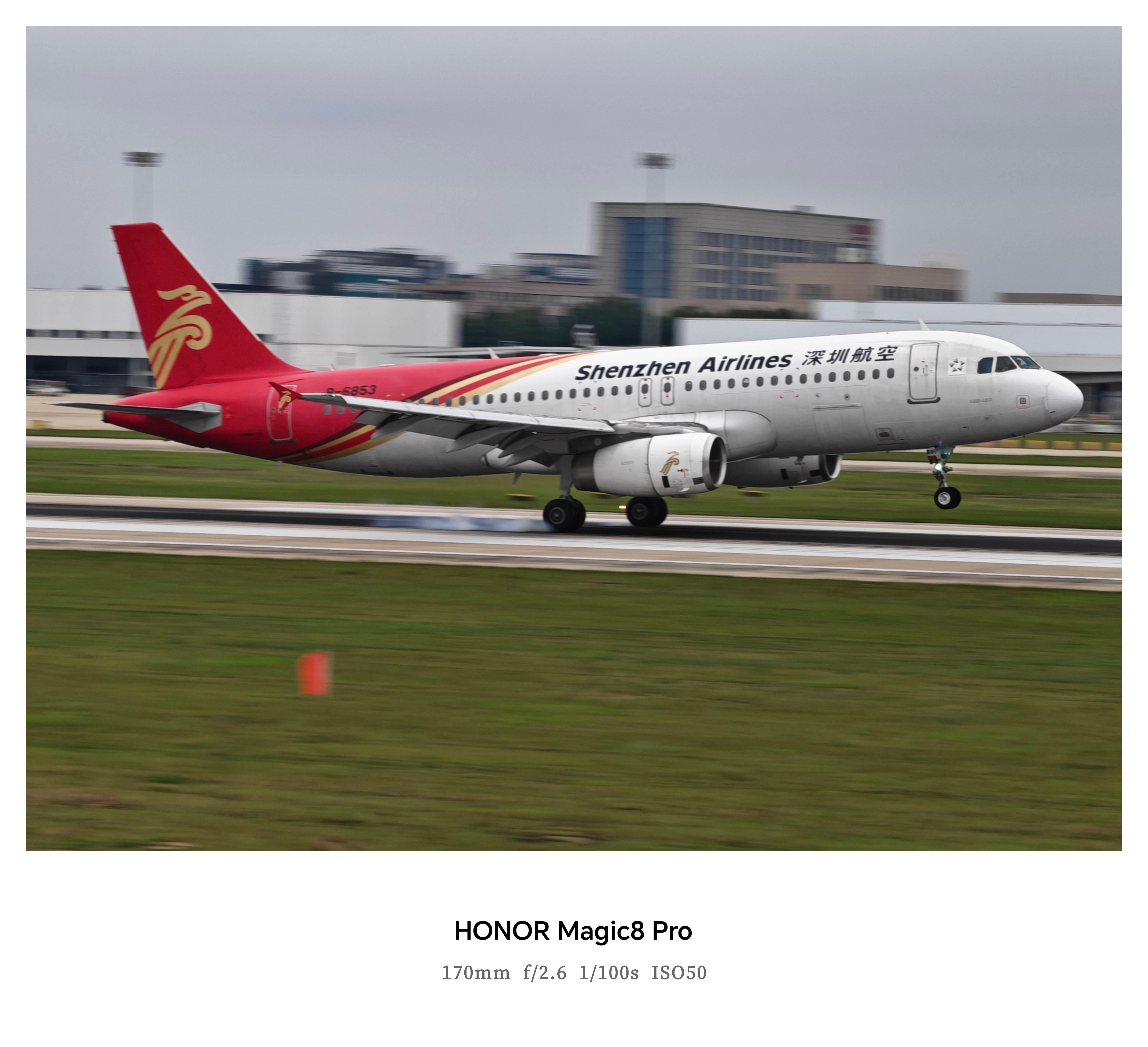 用荣耀Magic8 Pro专门去拍了飞机,鹰眼抓拍和拍照按键搭配,连飞机落地的烟雾都能拍清楚,锁定飞机连拍,几乎有一种“摇摇乐”的感觉。[笑而不语]