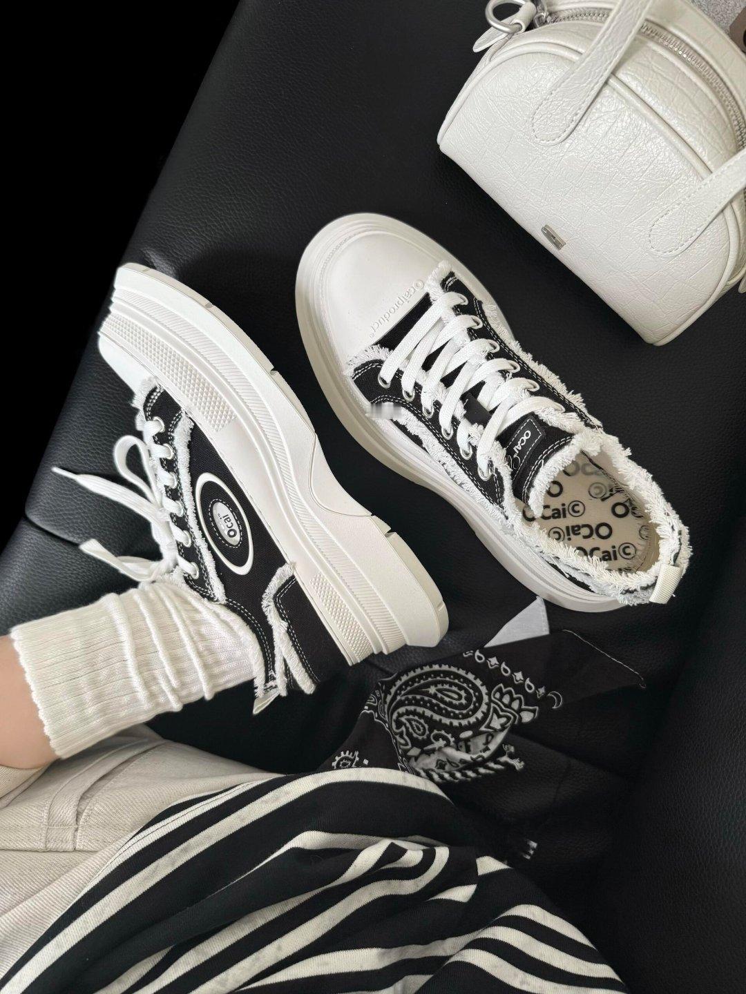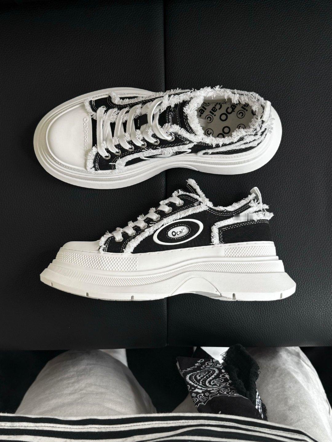 Ocai这双帆布鞋,简直把法式慵懒的松弛感刻进了设计基因里。黑白主调的配色干净又