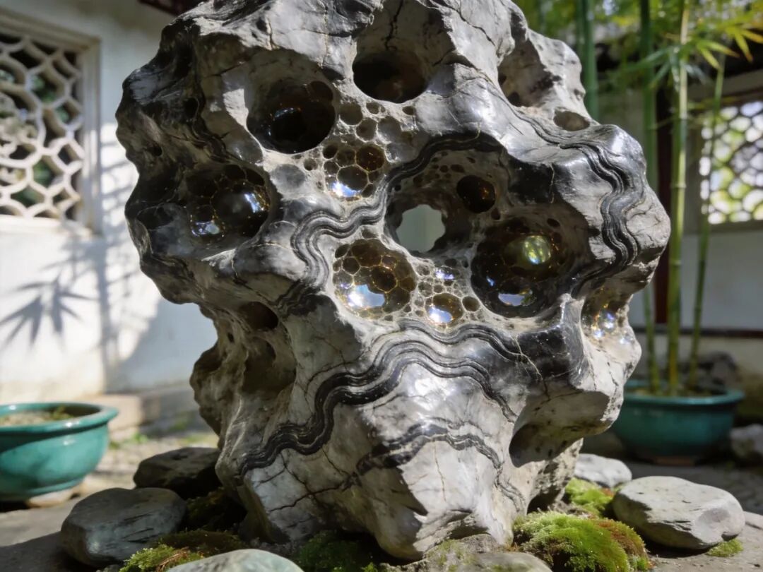你可别小看这声音,古代的文人墨客就好这一口!他们没事就喜欢敲敲石头,听听声音,感觉自己像个音乐家一样!而且这灵璧石还特别适合放在书房里,既能当装饰,又能当"乐器",简直是"一石两用"!相当于现在的蓝牙音箱,既能听歌又能当摆件,这性价比一下就上去了!